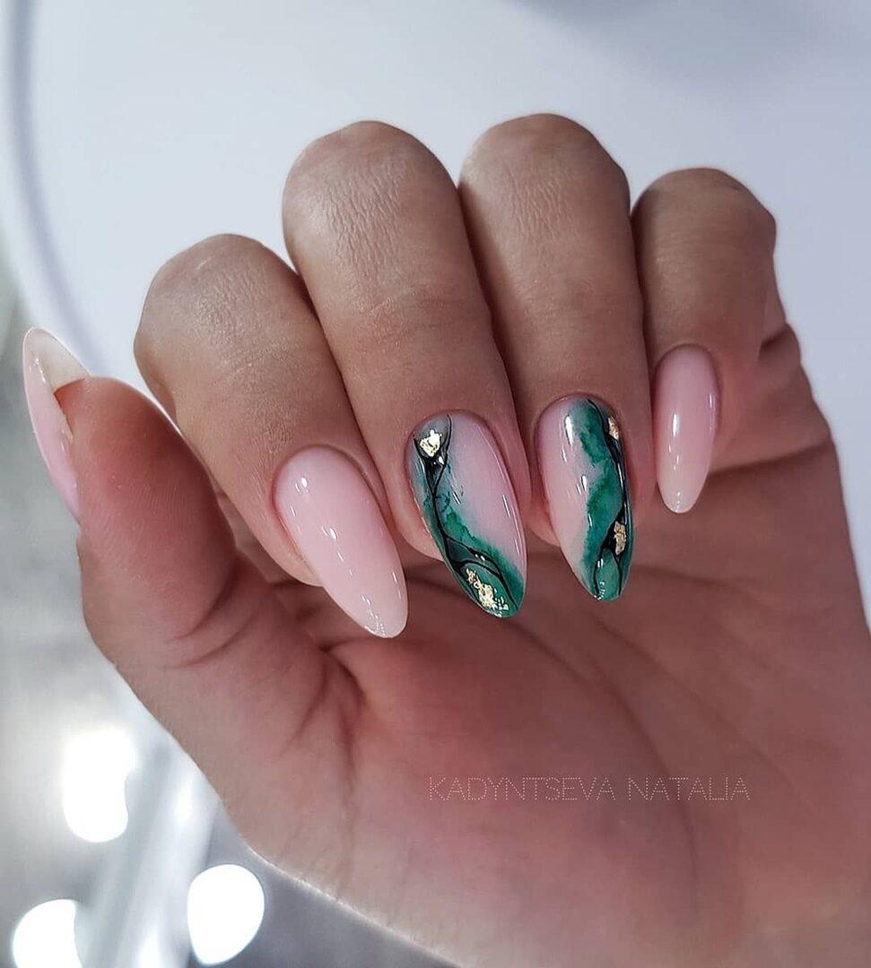Зелёные однотонные ноготки без всяких сомнений смотрятся очень красиво, но большинство модниц всё-таки предпочитают украшать покрытия всевозможным дизайном, поэтому мы дополнительно предлагаем вниманию наших читательниц модные идеи зелёного нейл-арта с блёстками и рисунками, среди которых каждая барышня найдёт для себя идеальный вариант. Среди актуальных идей можно отметить всевозможные сезонные изображения, геометрические мотивы, флористику и рисунки в стиле минимализм, которые выбираются на основании личных предпочтений и настроения каждой дамы.