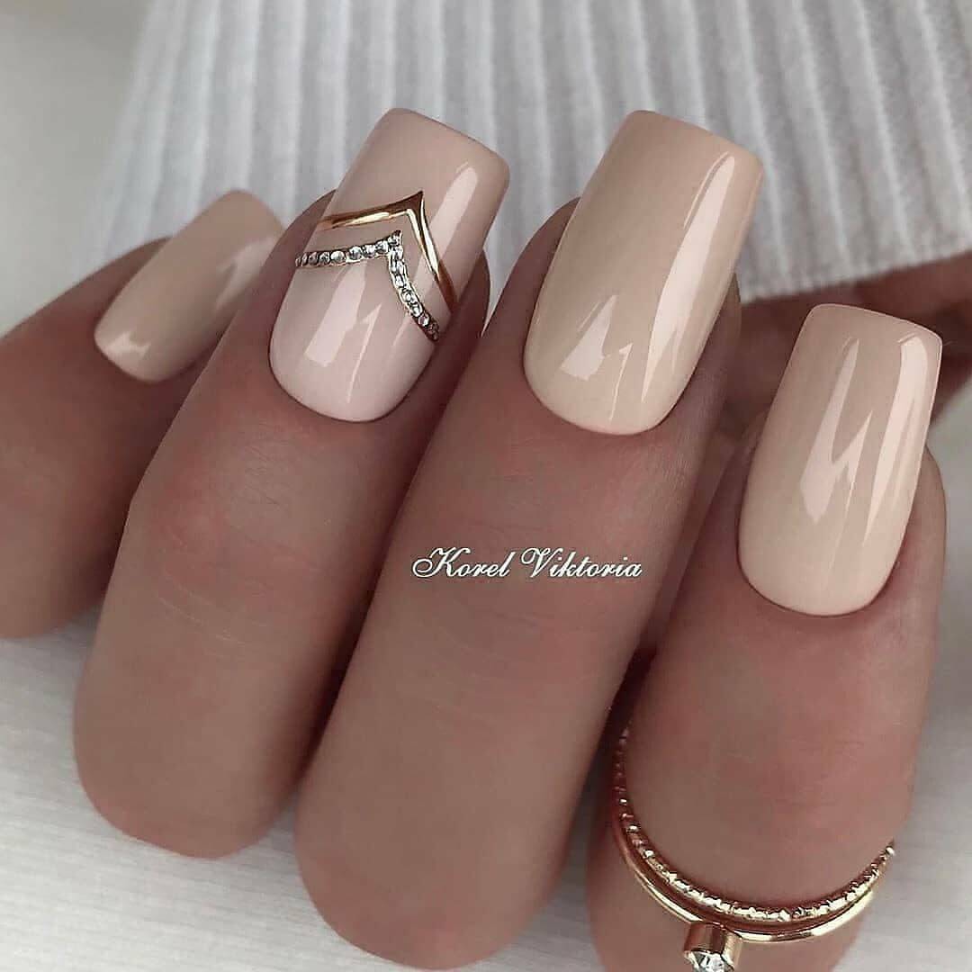 Если у вас насыщенный график, то покрытые блестящим лаком ногти можно дополнить несколькими ослепительными стразами. Сдержанный дневной маникюр за пару минут засияет новыми яркими красками, которые будут уместны на любом вечернем мероприятии.