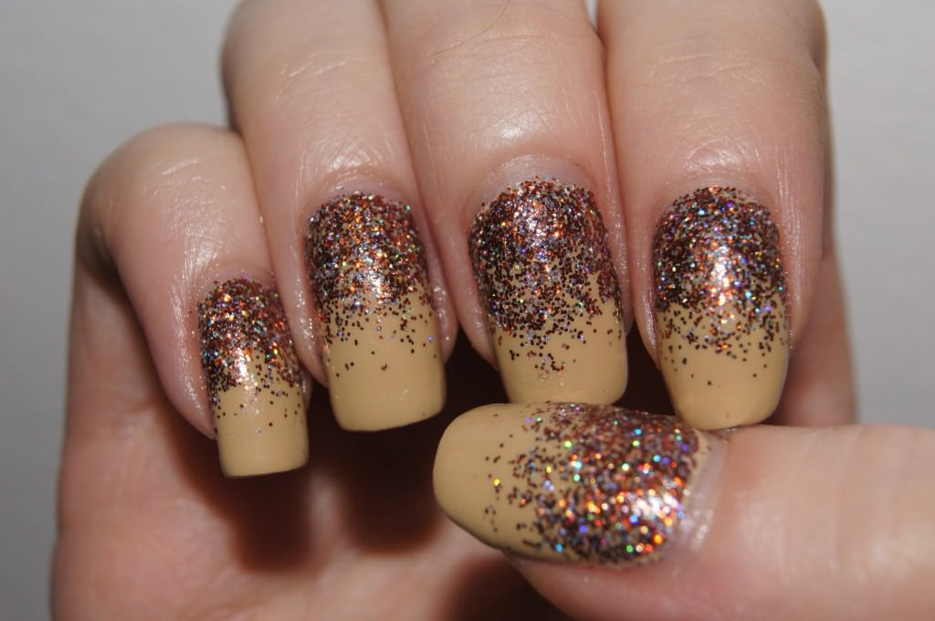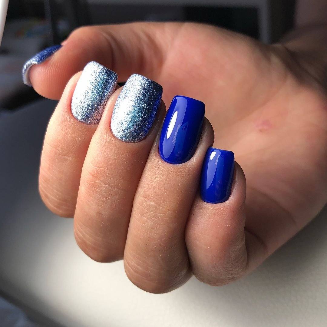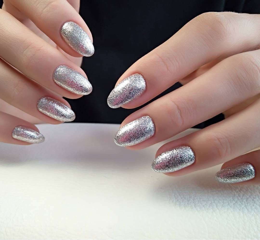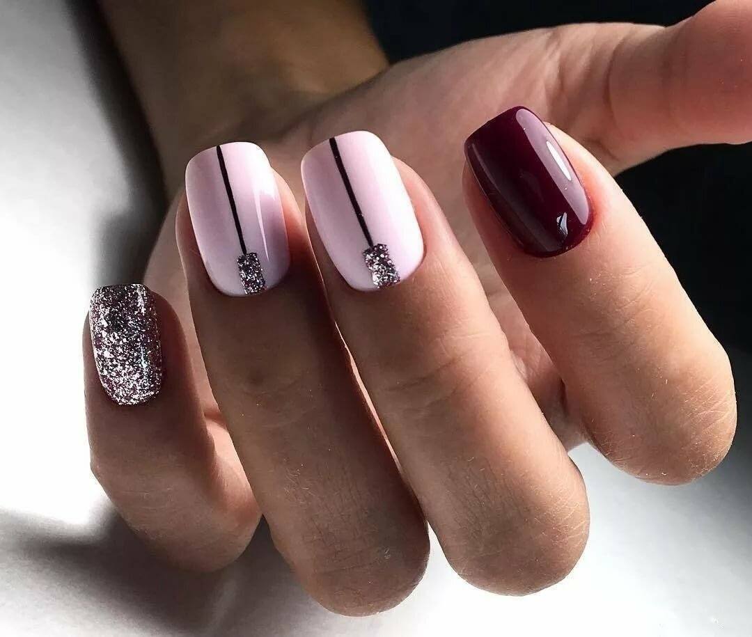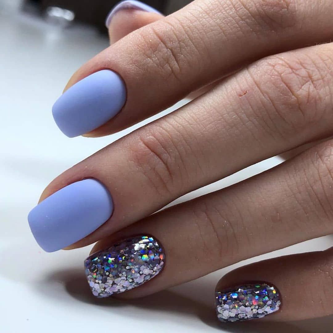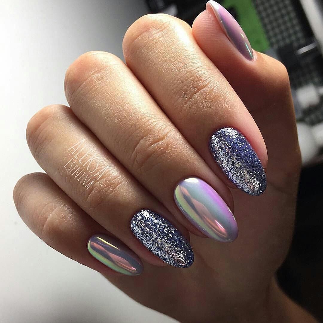 Маникюр с блестками в разных оттенках