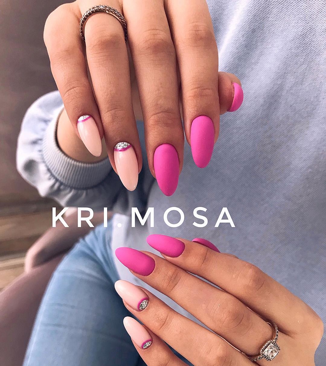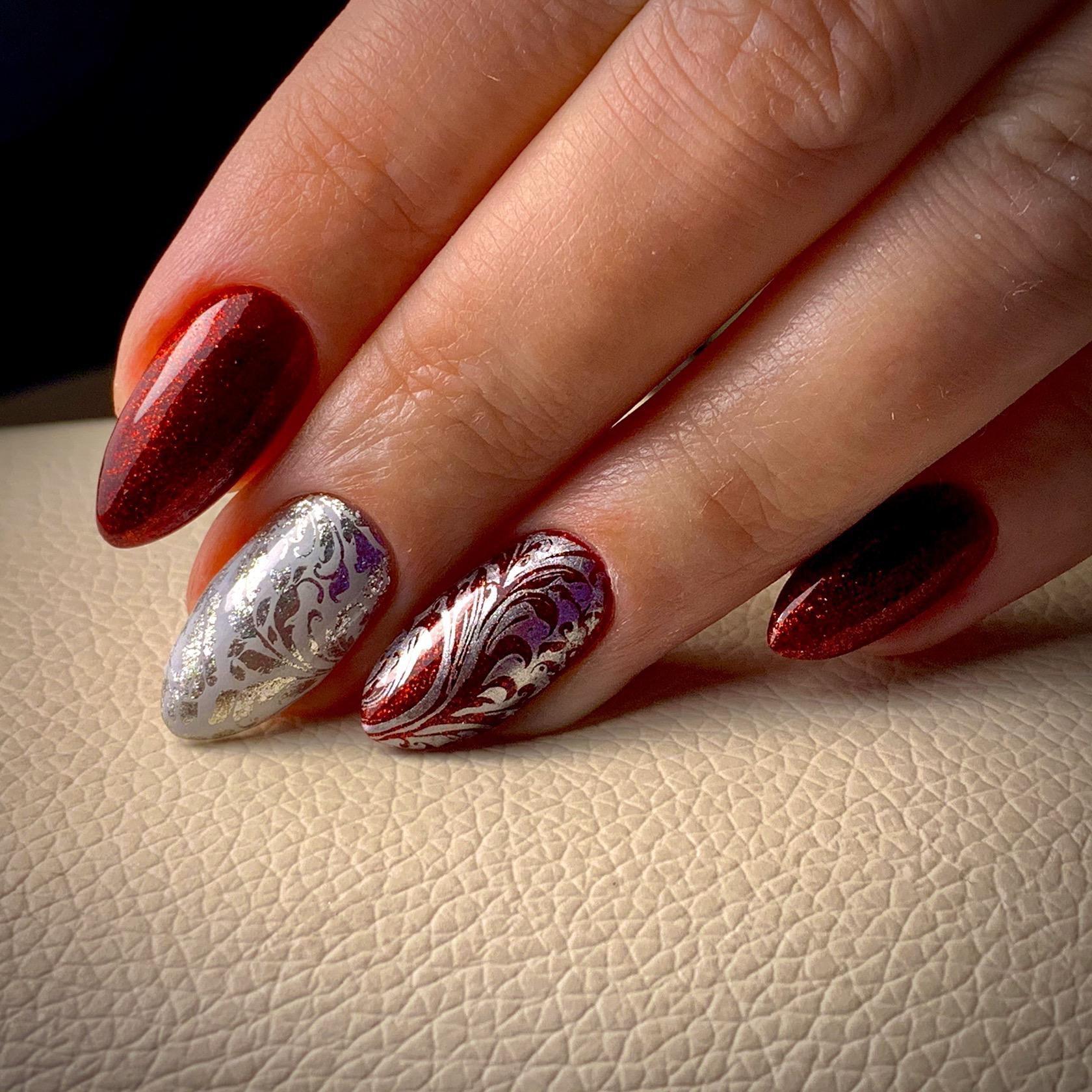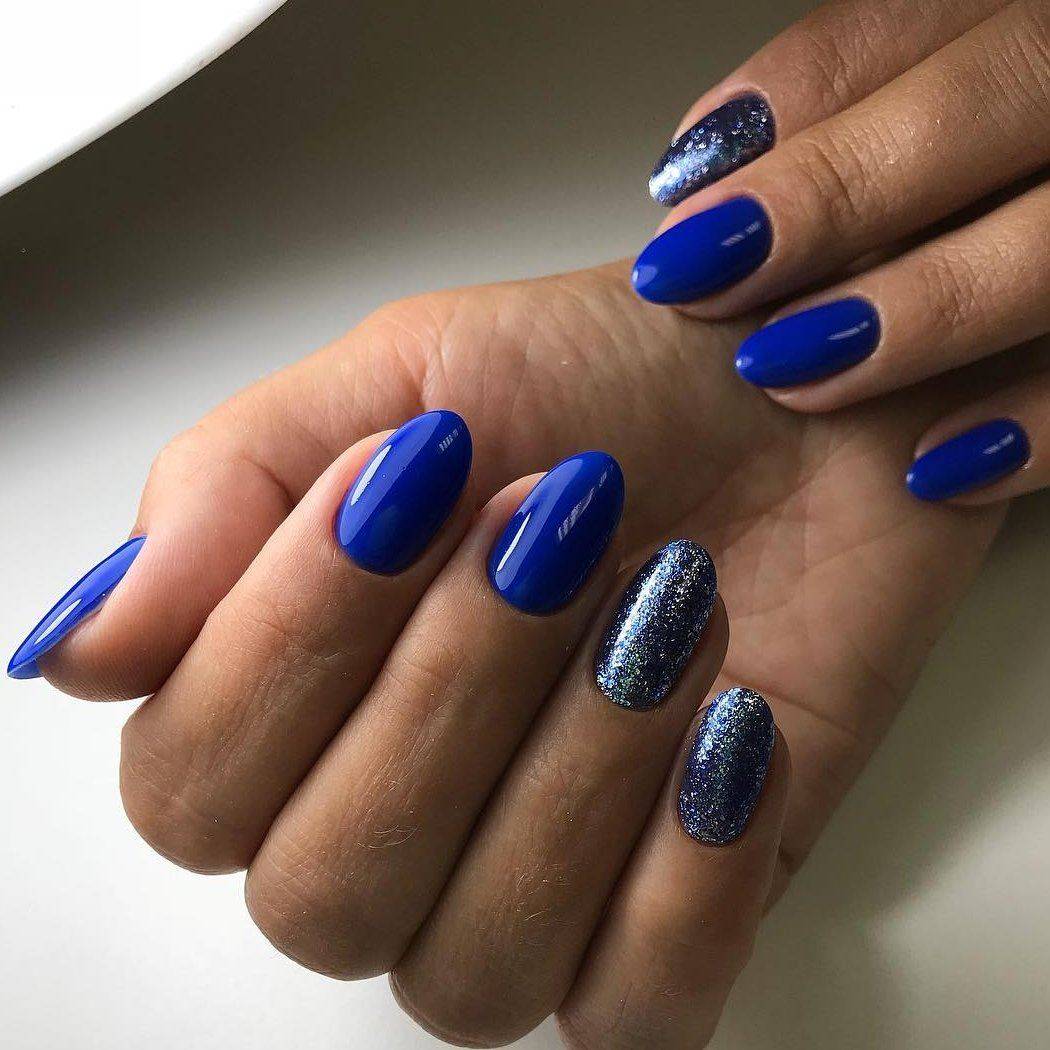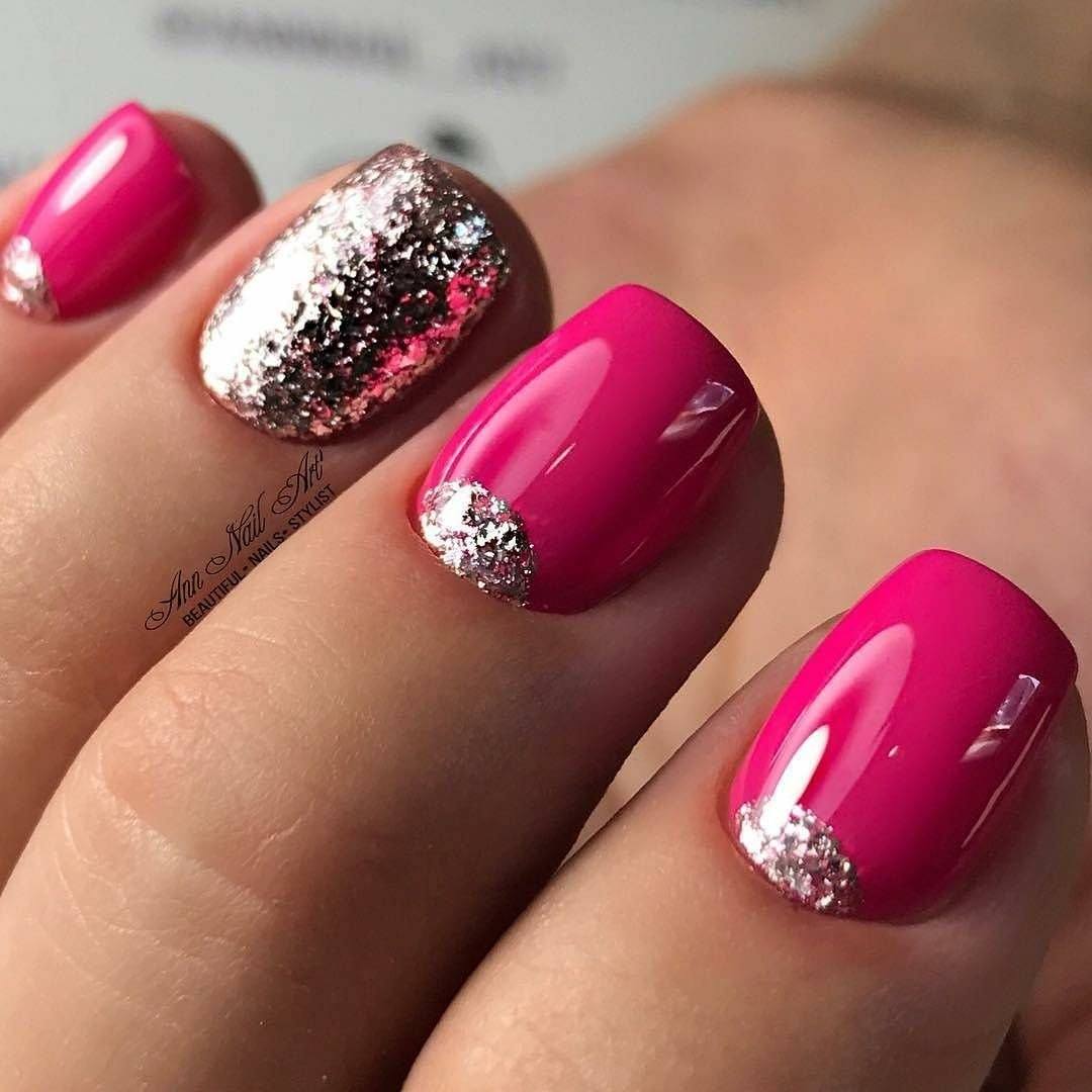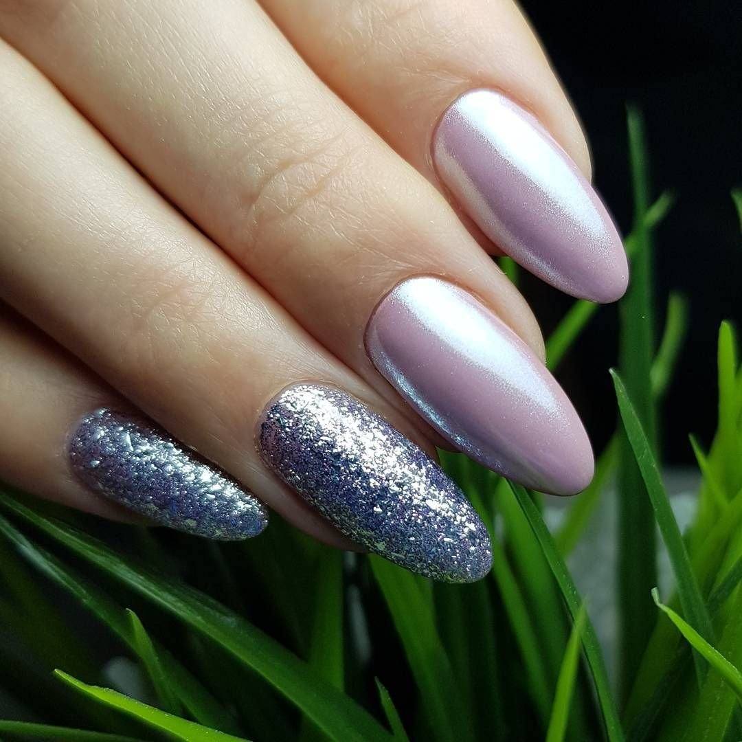Маникюр с блестками в разных оттенках