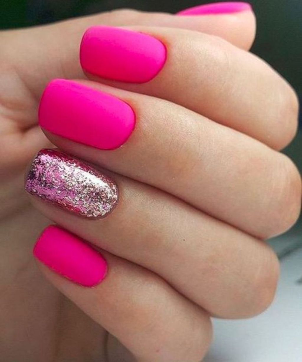 Особенно интересным будет подобный маникюр, если один из ногтей дополняется блестками в тон или полностью покрывается жидким глиттером того же цвета. Подобный вариант декора ногтей считается более спокойным, чем радужный, а значит может подойти как для праздников, так и в качестве повседневного варианта.