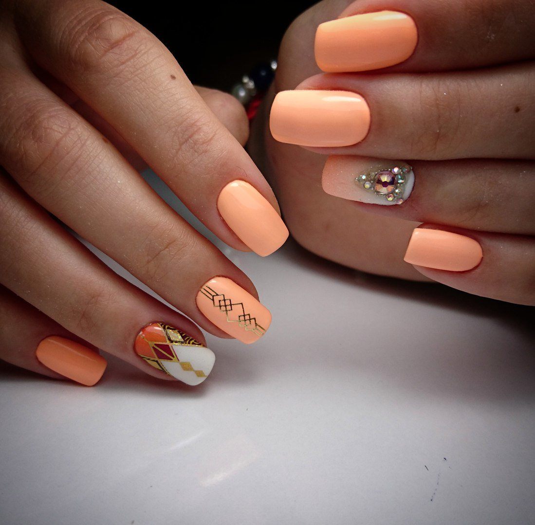 Более простой вариант, добавит стразы на какой-нибудь ноготок. Сильно увлекаться этим не стоит, только потому что это уже не так модно, как раньше.