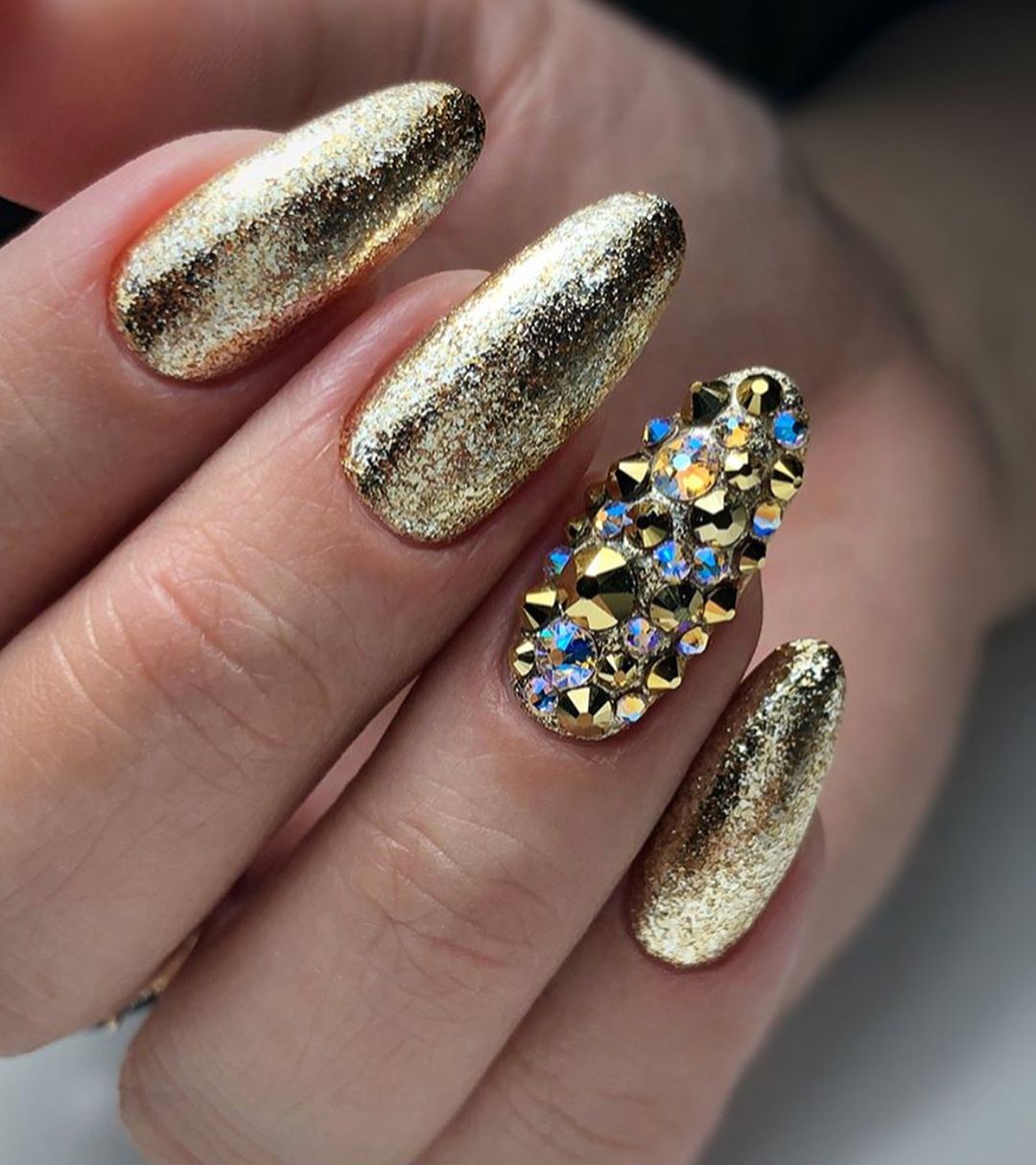 Качественный эксклюзивный маникюр с блестящими элементами стоит дорого.