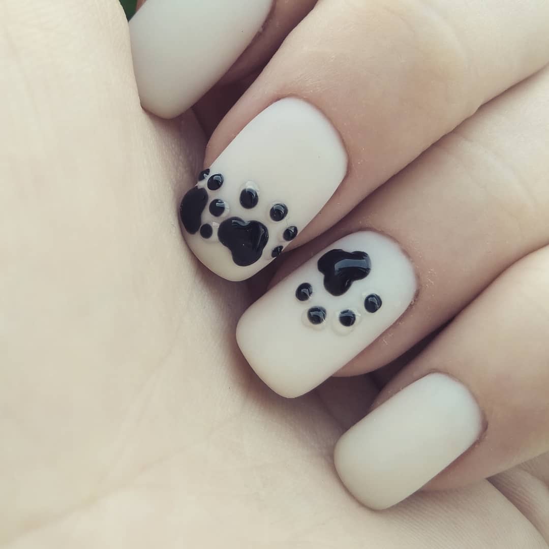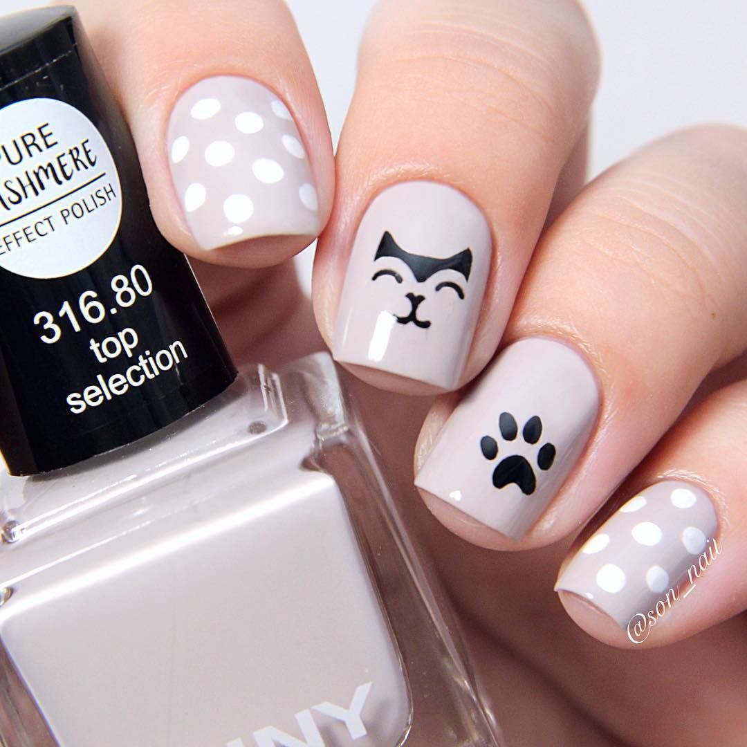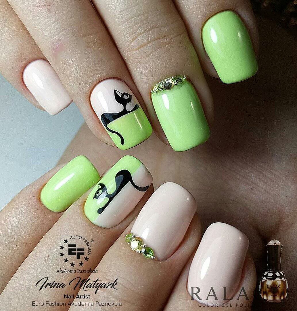 Короткие ноготки не повод отказываться от стильного дизайна с кошками. Чтобы маникюр получился выразительным внесите в него некоторые изменения. Вместо кошки изобразите на ногтях лапки, мордочки или силуэты.