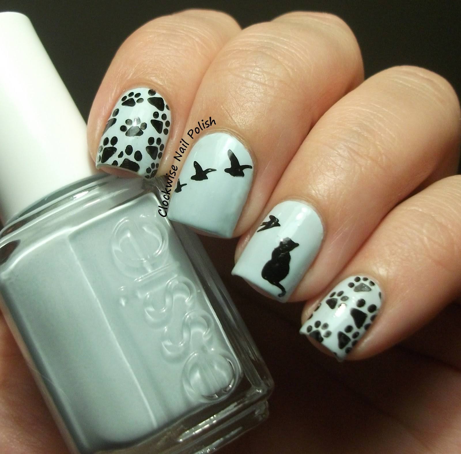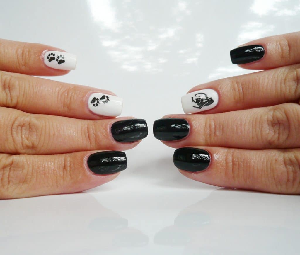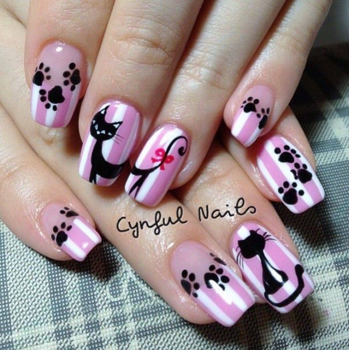 Короткие ноготки не повод отказываться от стильного дизайна с кошками. Чтобы маникюр получился выразительным внесите в него некоторые изменения. Вместо кошки изобразите на ногтях лапки, мордочки или силуэты.