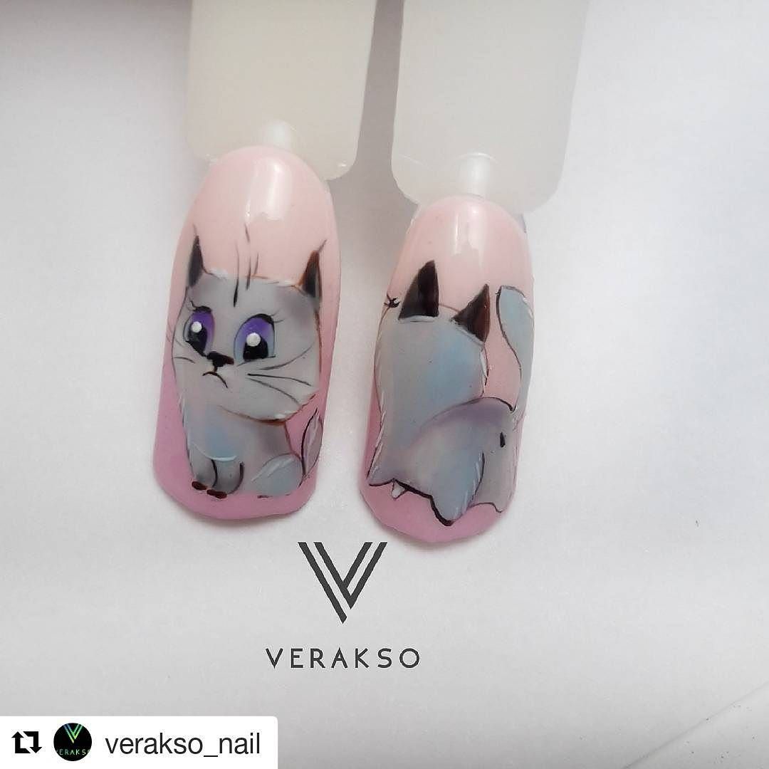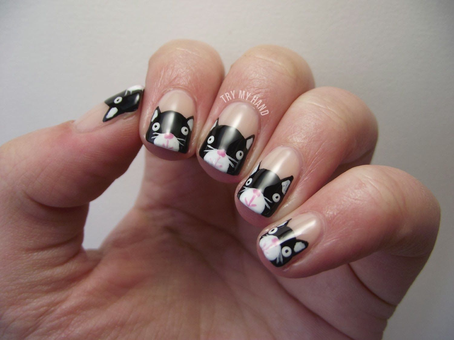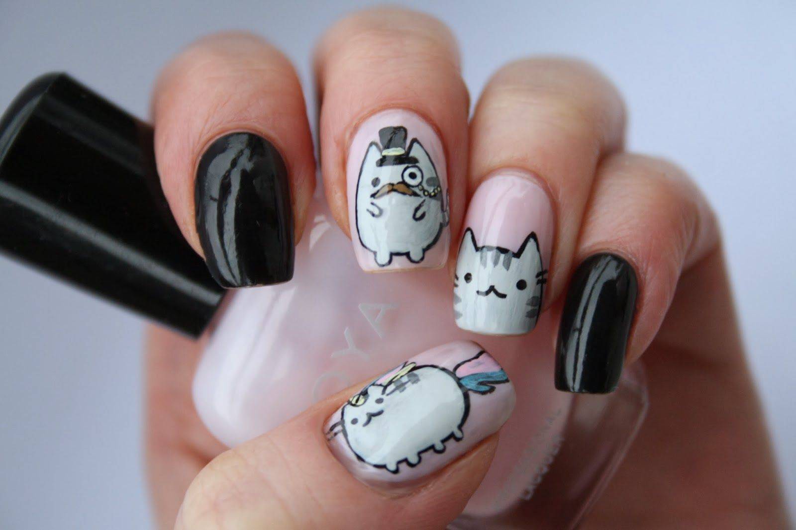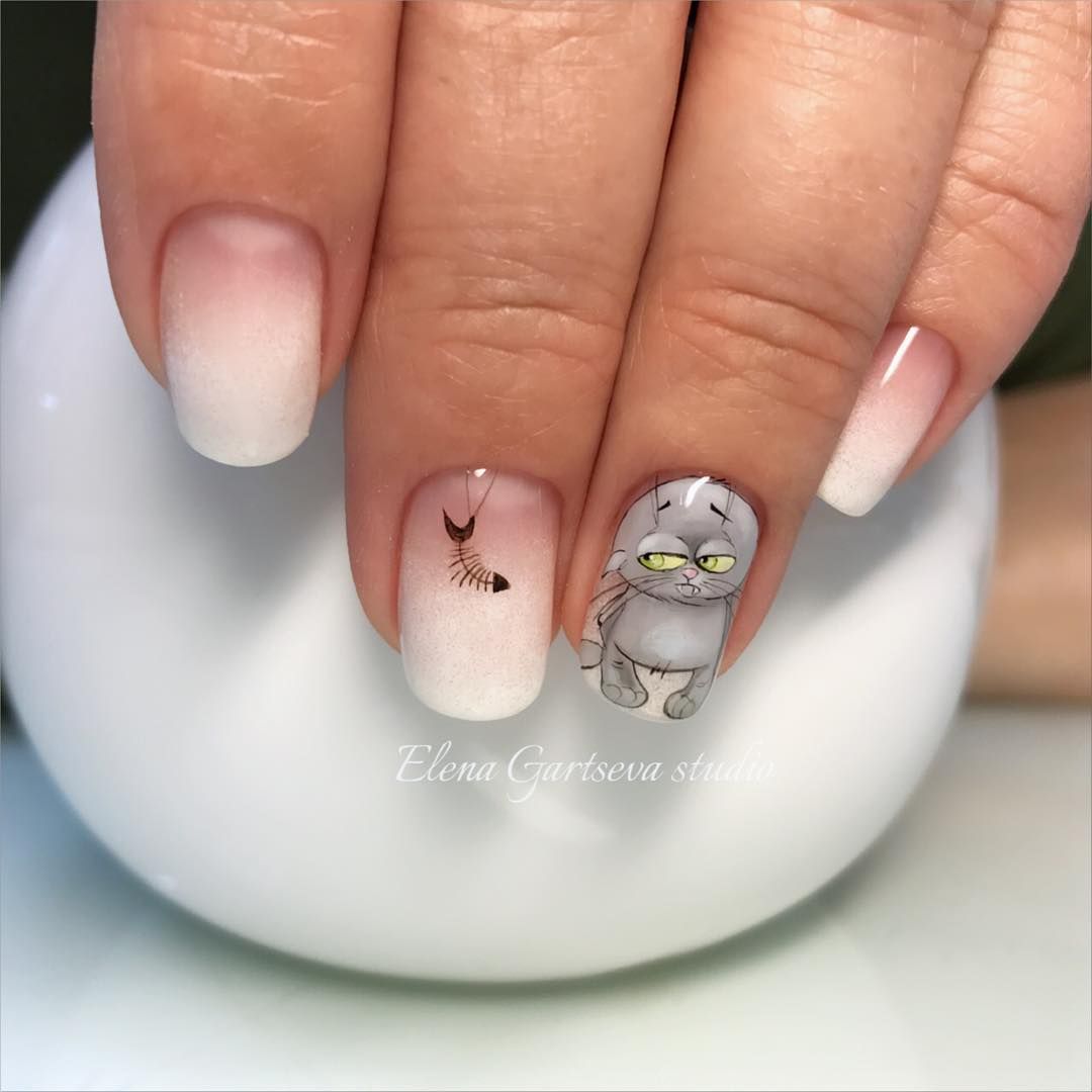 Маникюр с кошками на короткие ногти