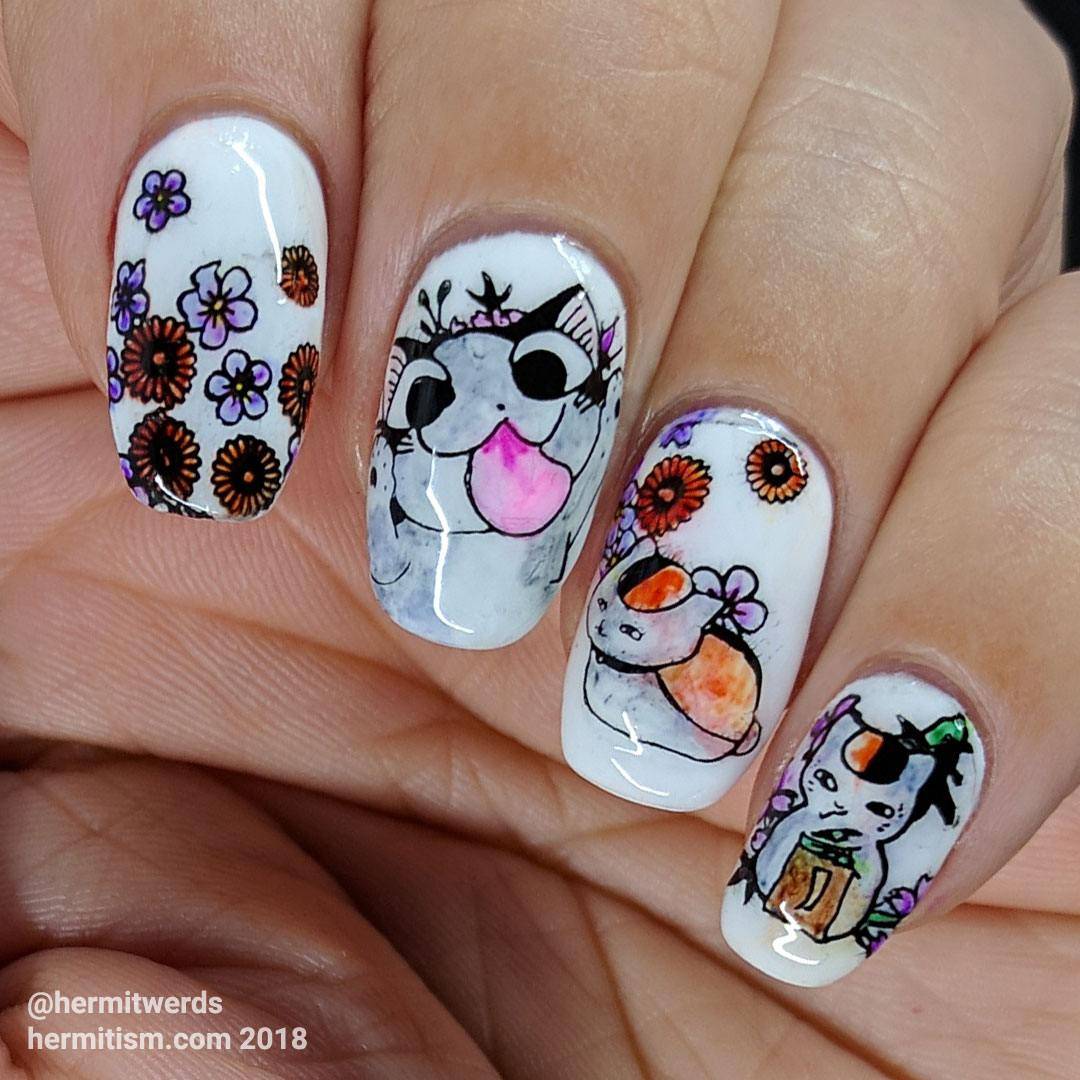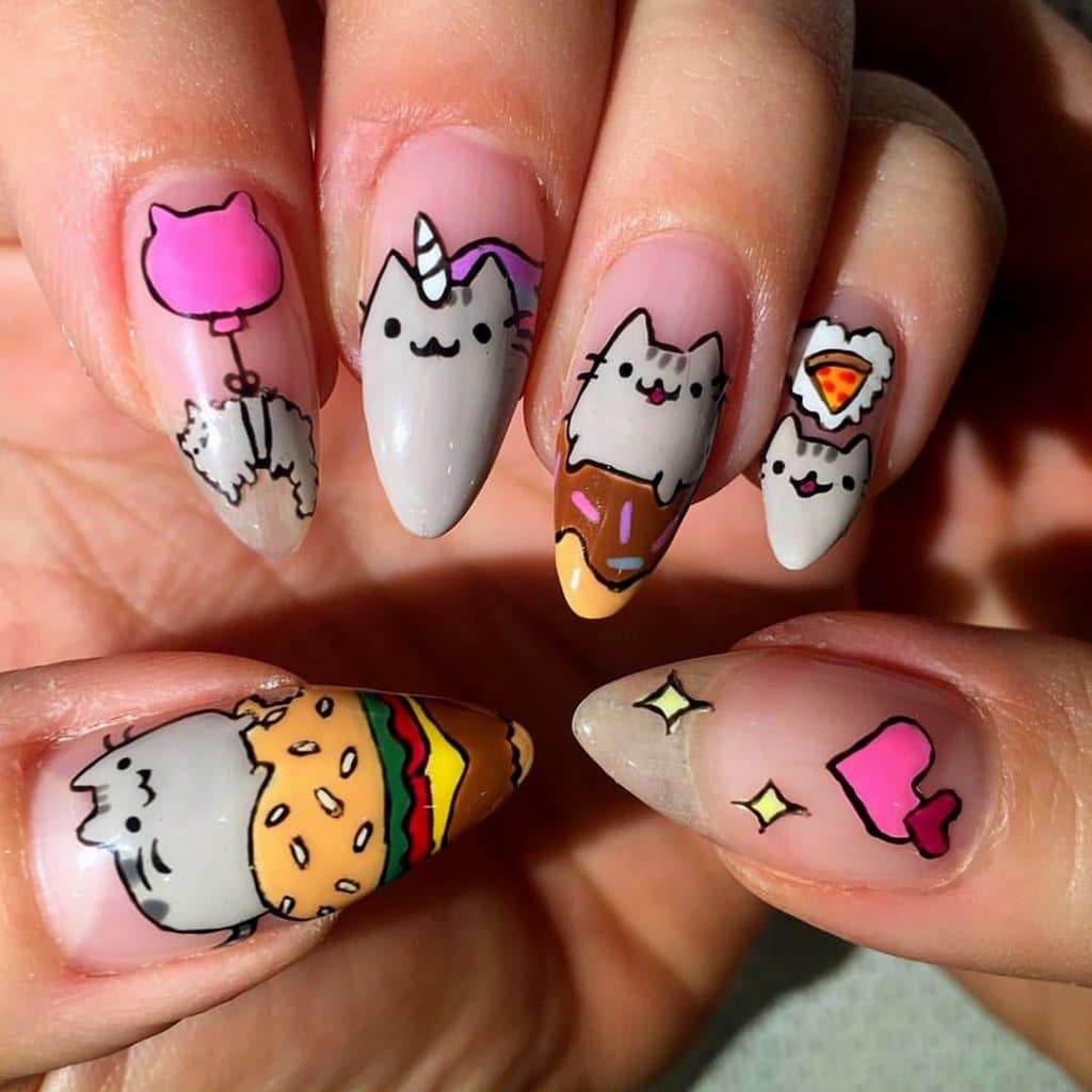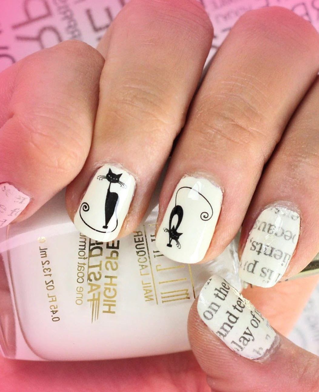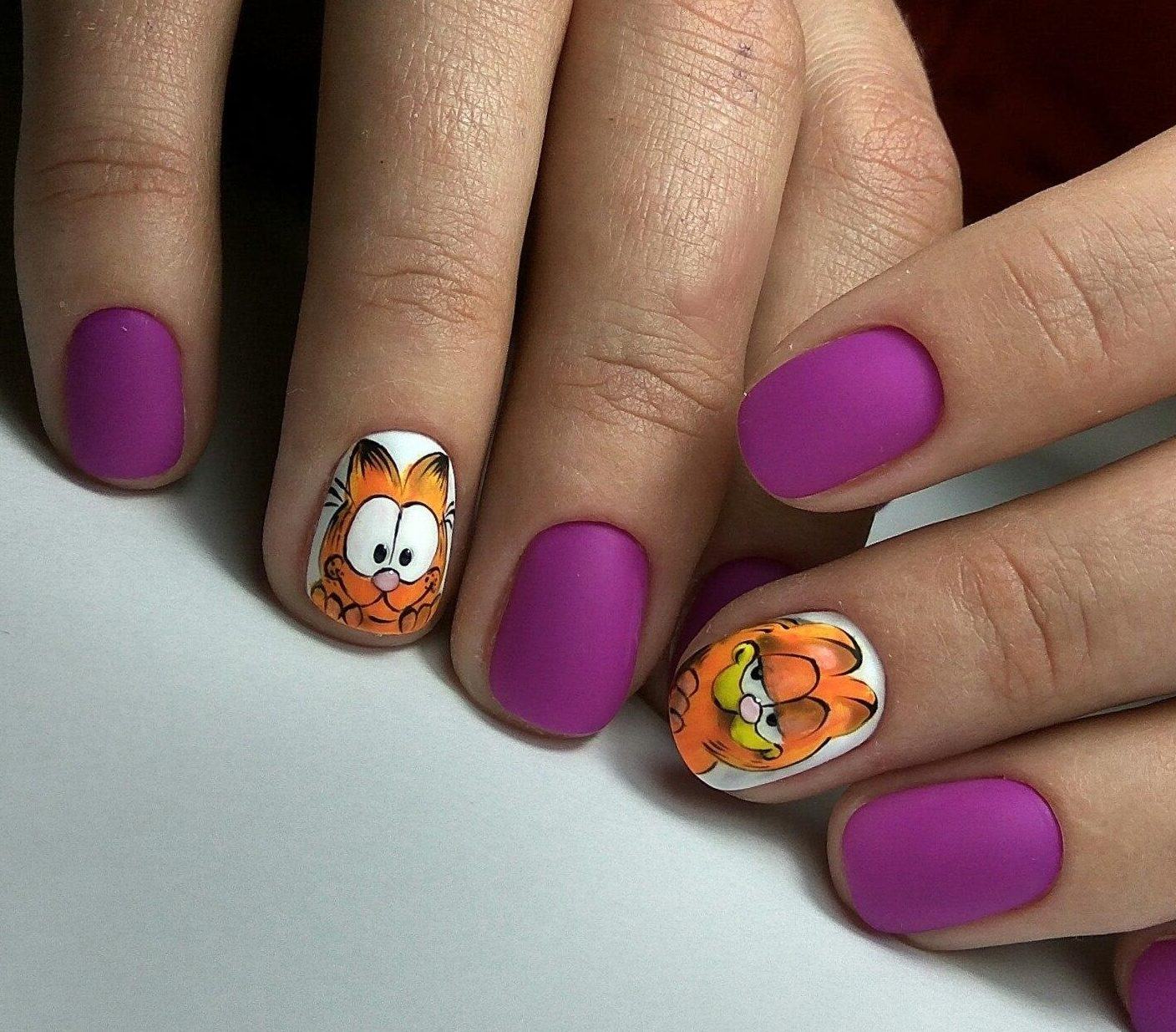 Маникюр с кошками на короткие ногти