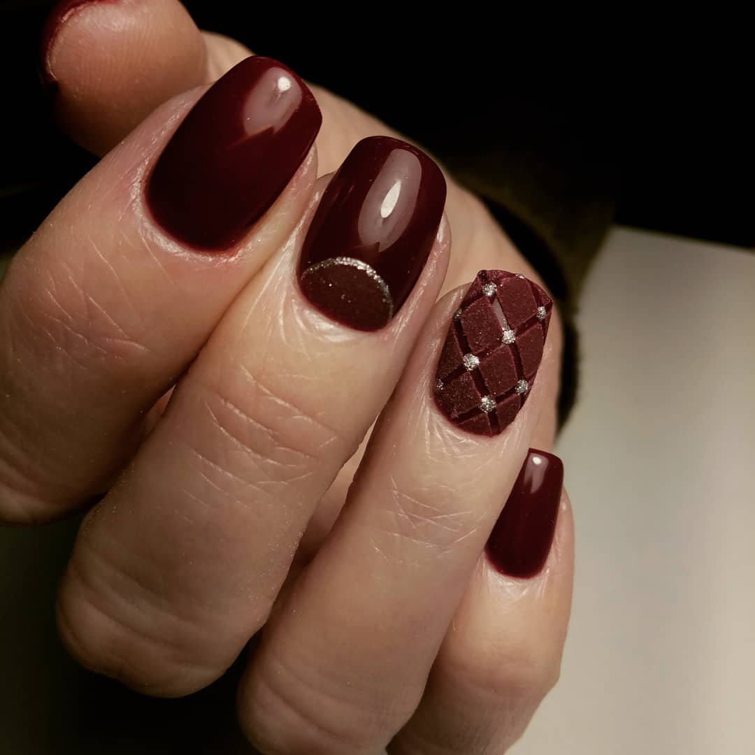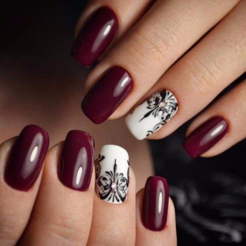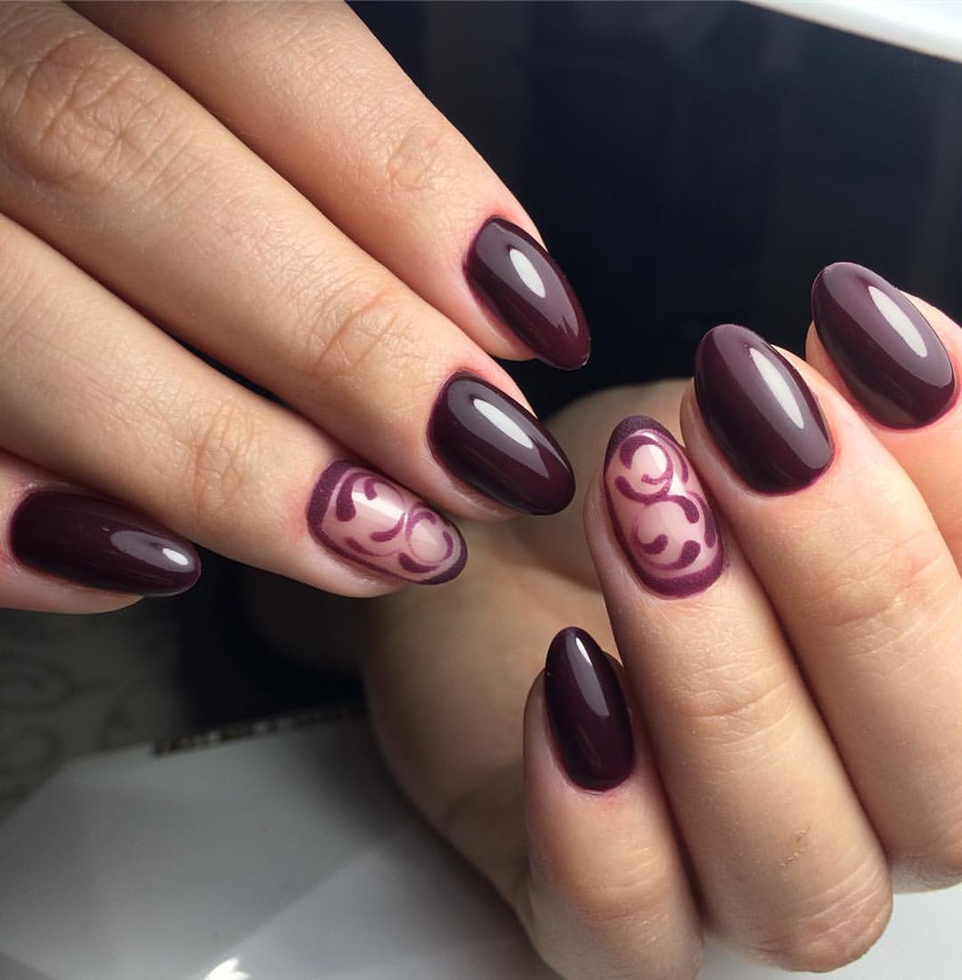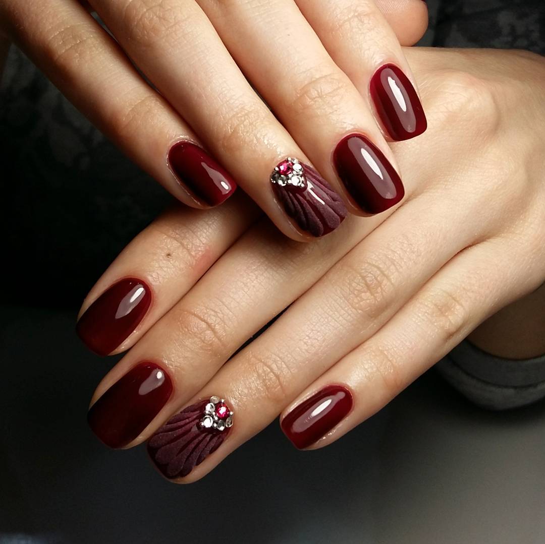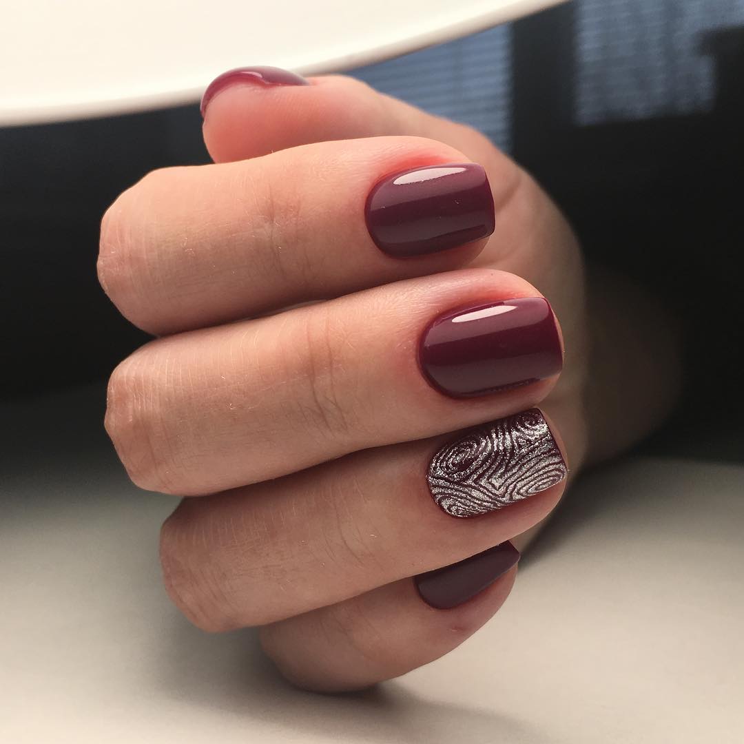 Безусловно, тёмно-вишнёвый маникюр самодостаточен и прекрасен даже без усложнённого дизайна и акцентных ноготков.