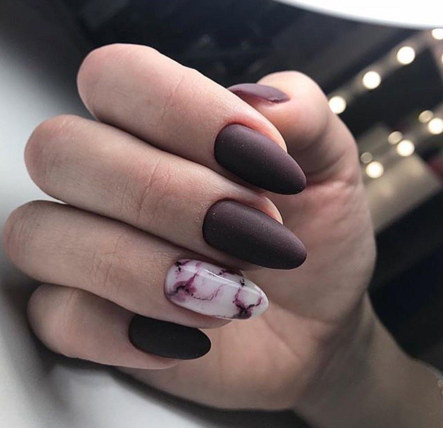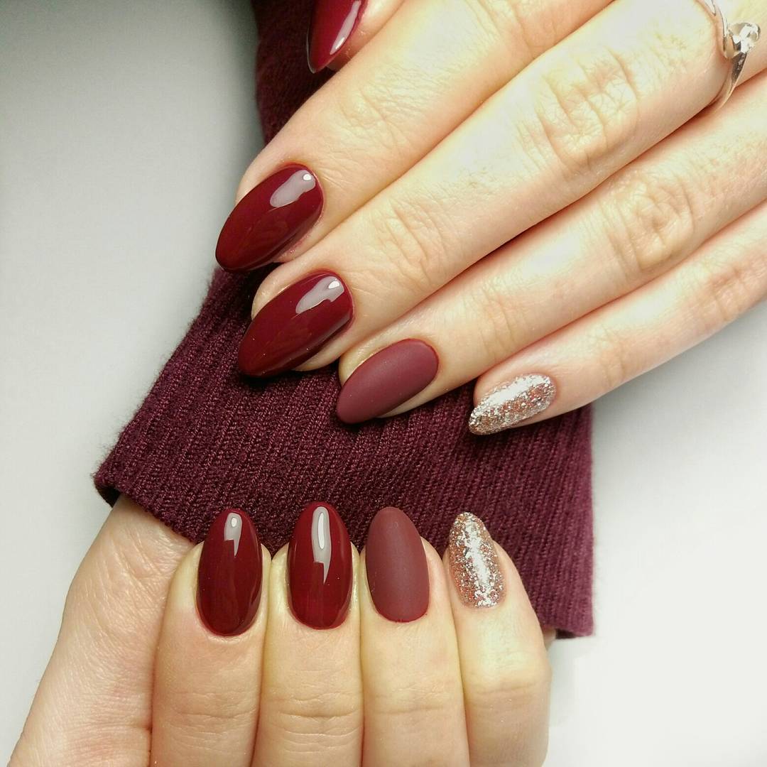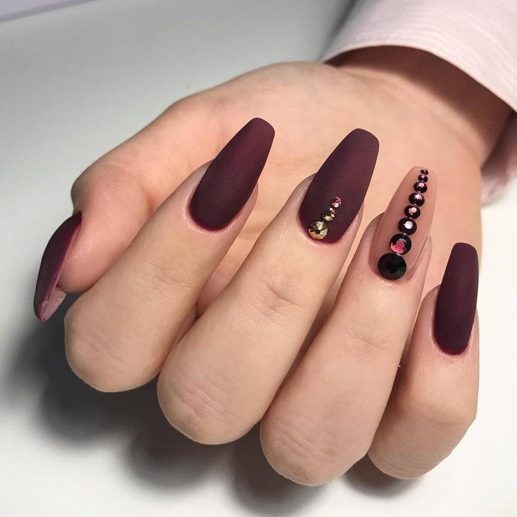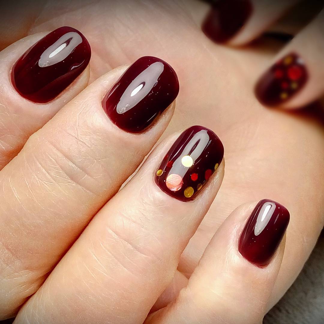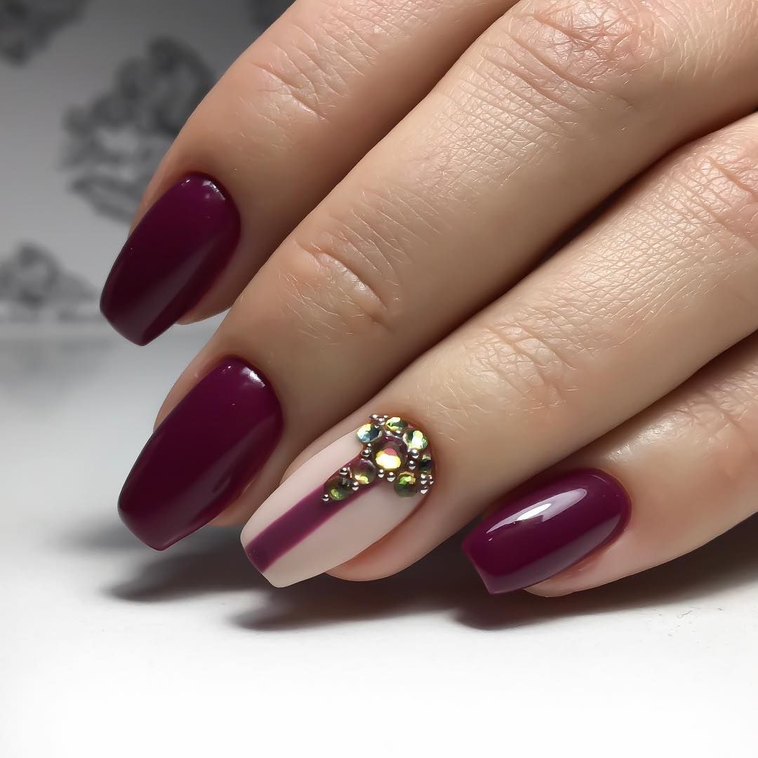 Безусловно, тёмно-вишнёвый маникюр самодостаточен и прекрасен даже без усложнённого дизайна и акцентных ноготков.