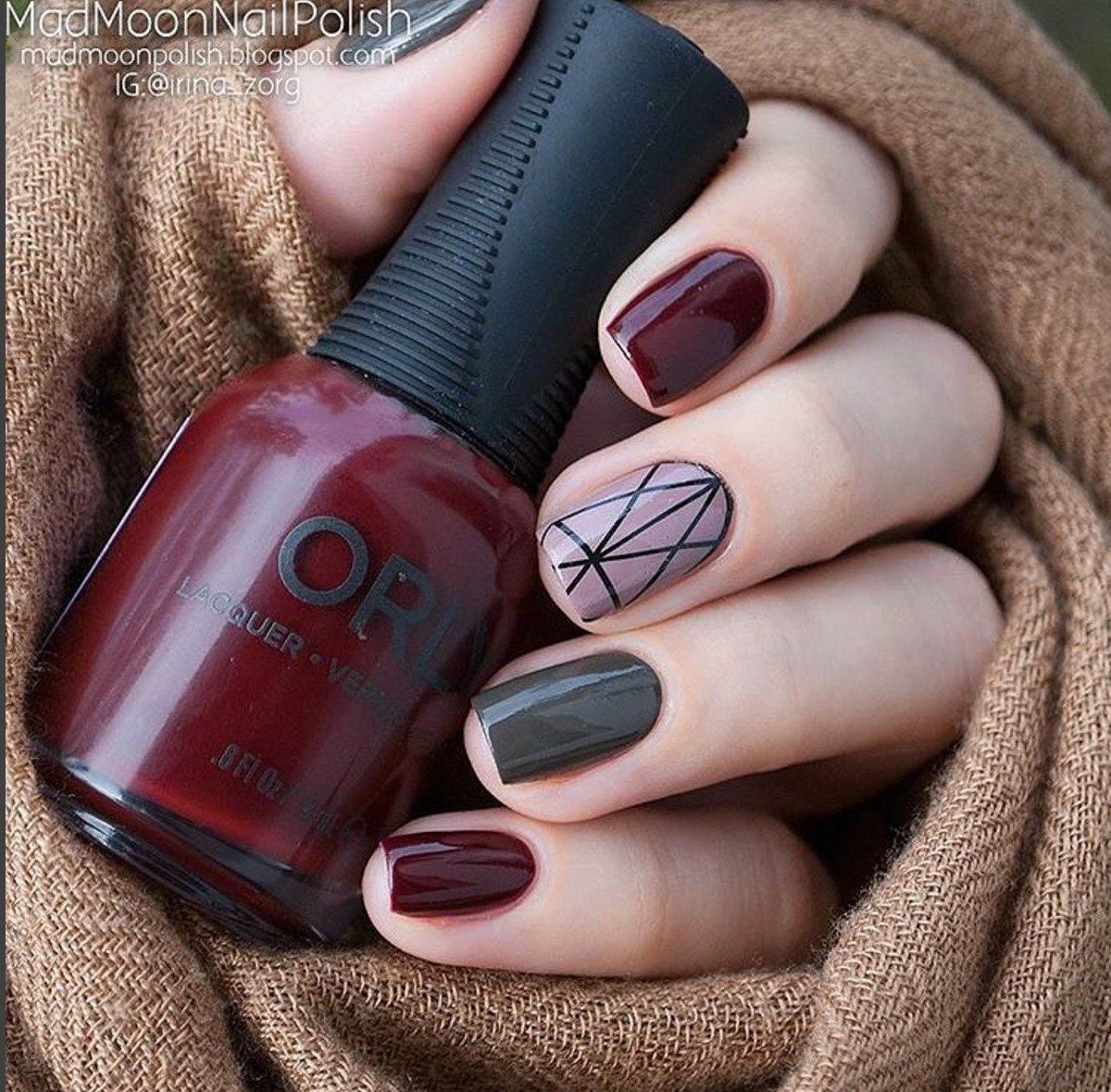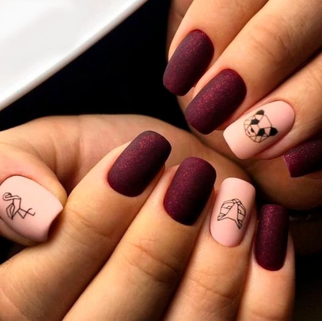 Вишневый маникюр с геометрией