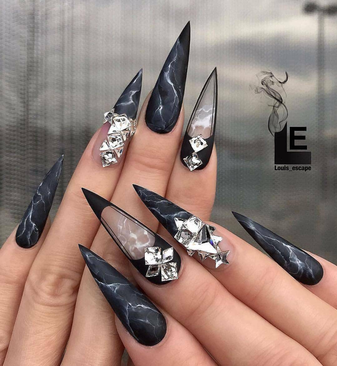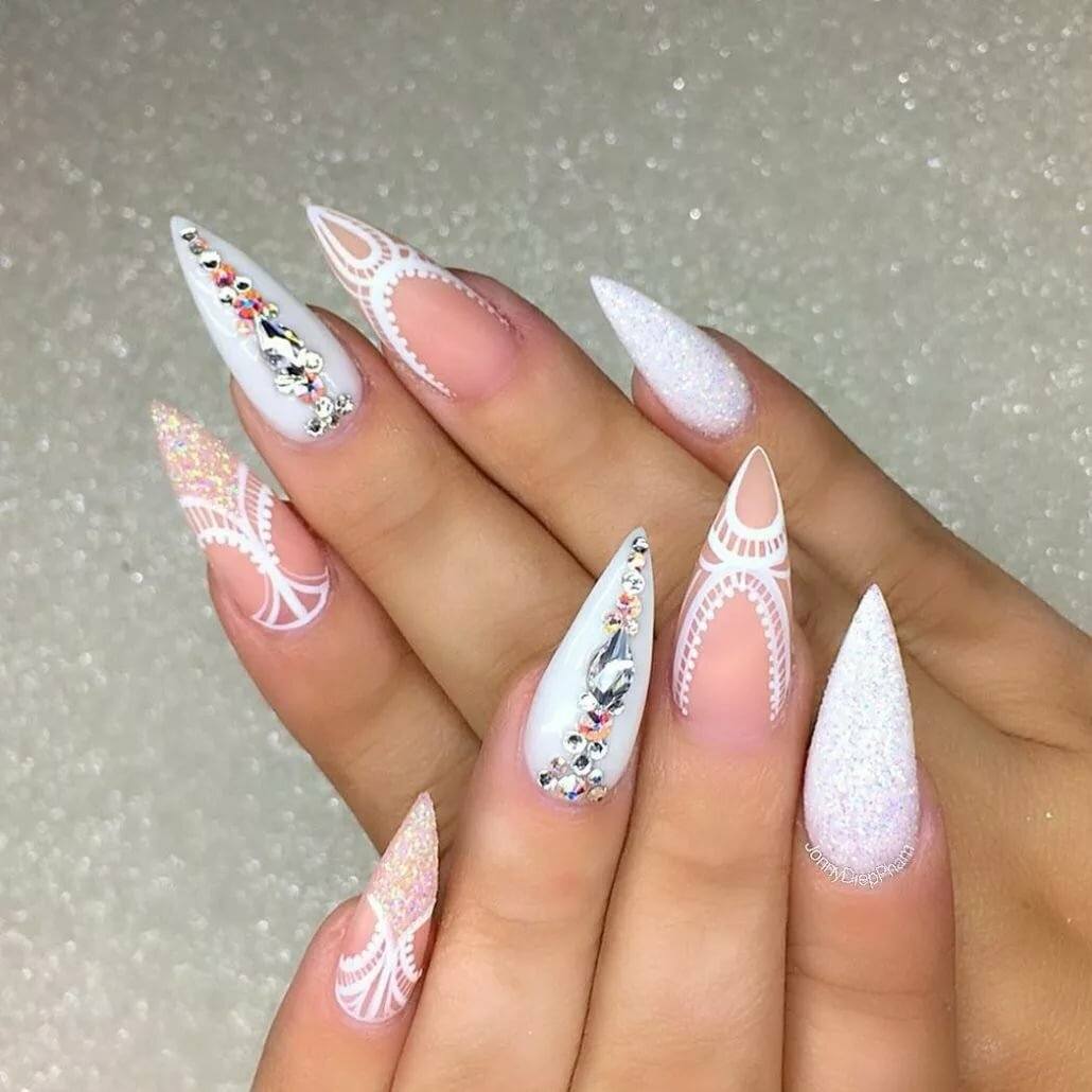 Маникюр со стразами на длинные ногти 2020: варианты выкладки стразов на ногтях