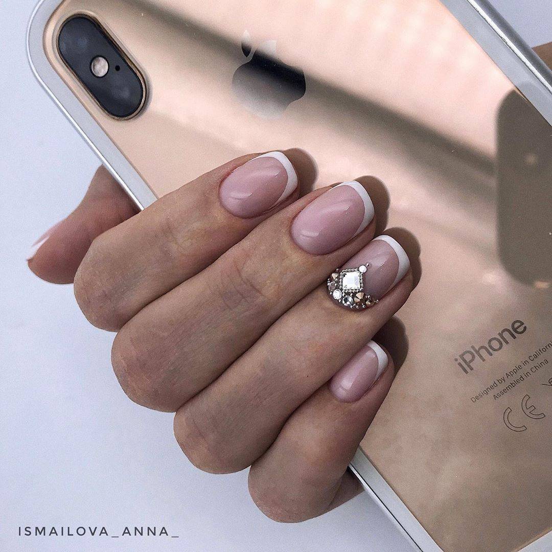 Французский маникюр со стразами