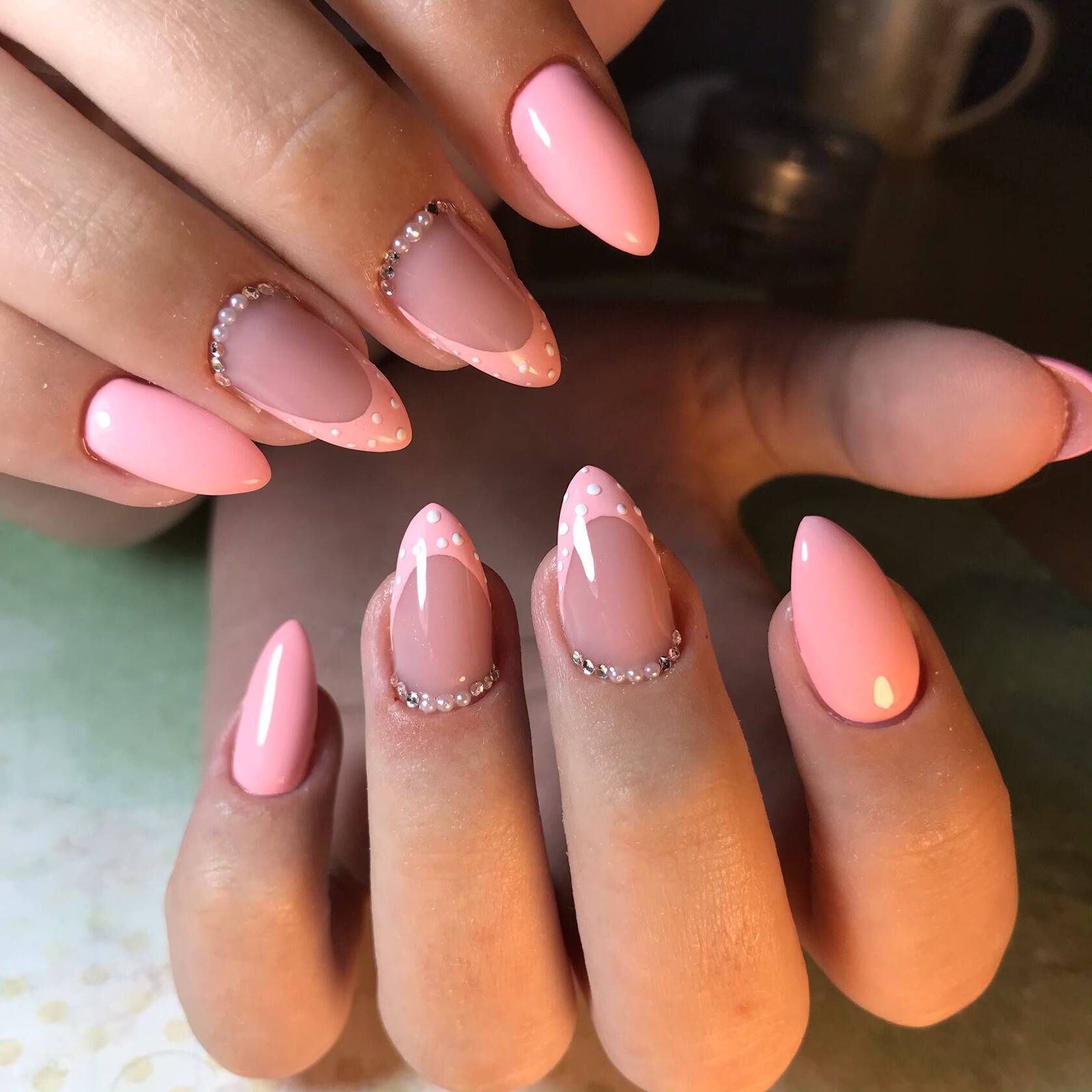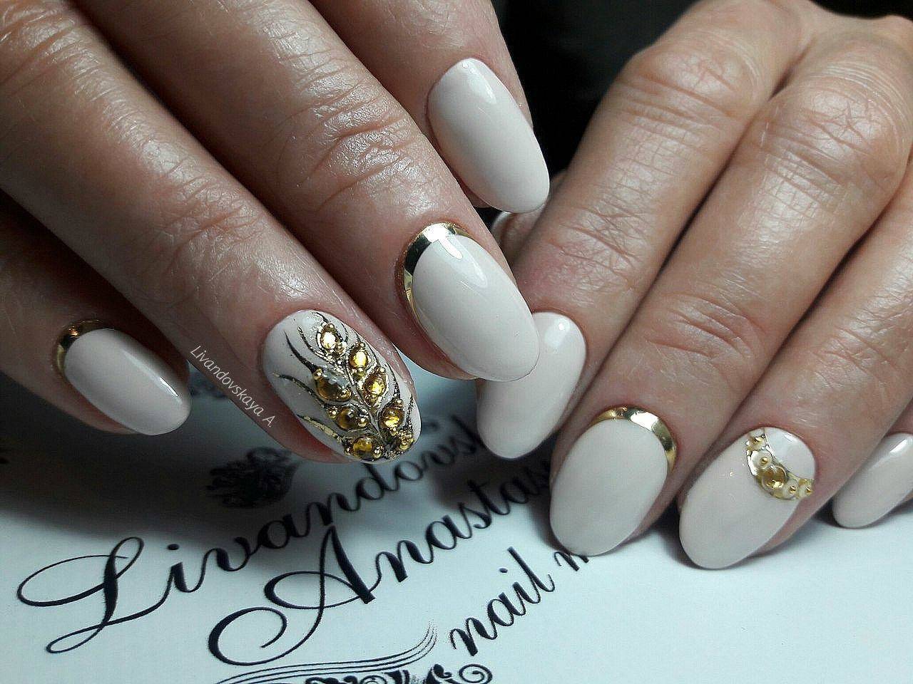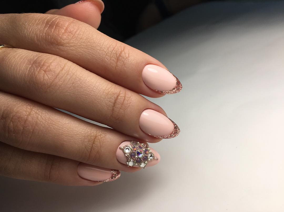 Маникюр нюд на миндалевидные ногти