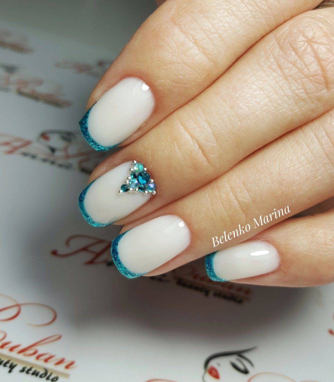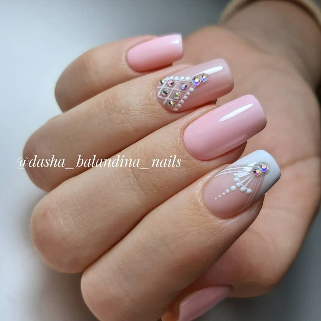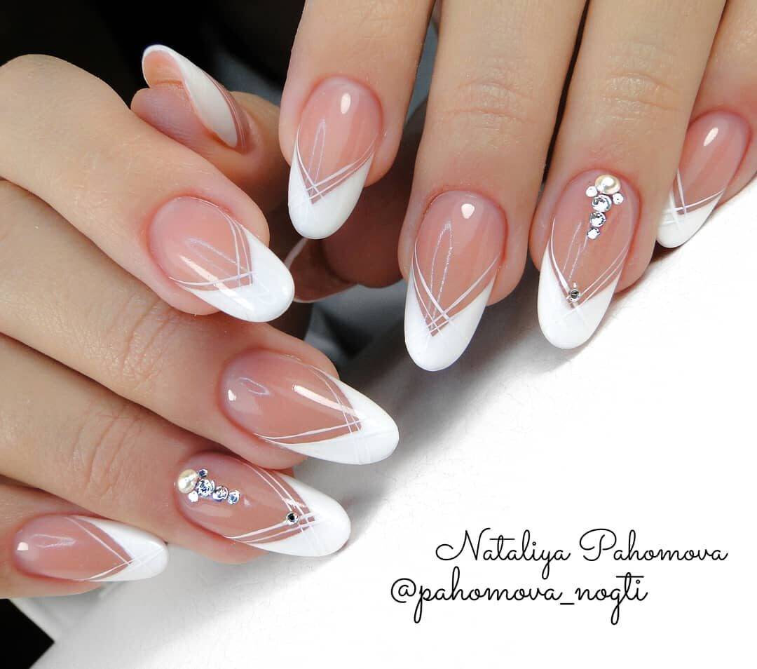 Белый маникюр со стразами
