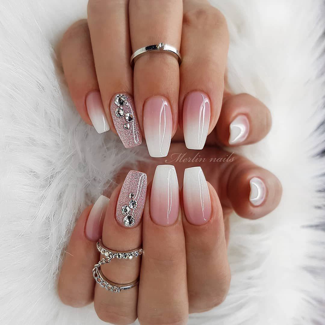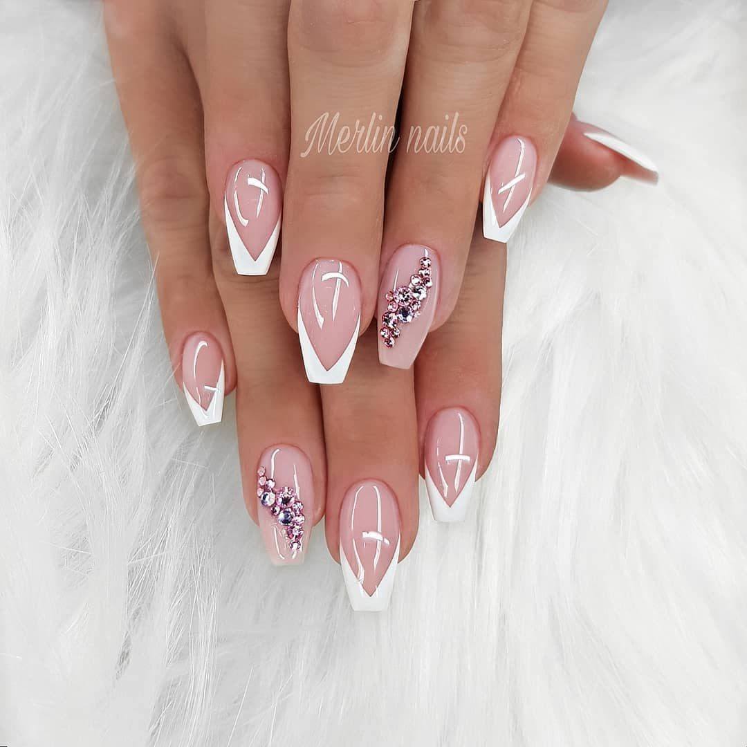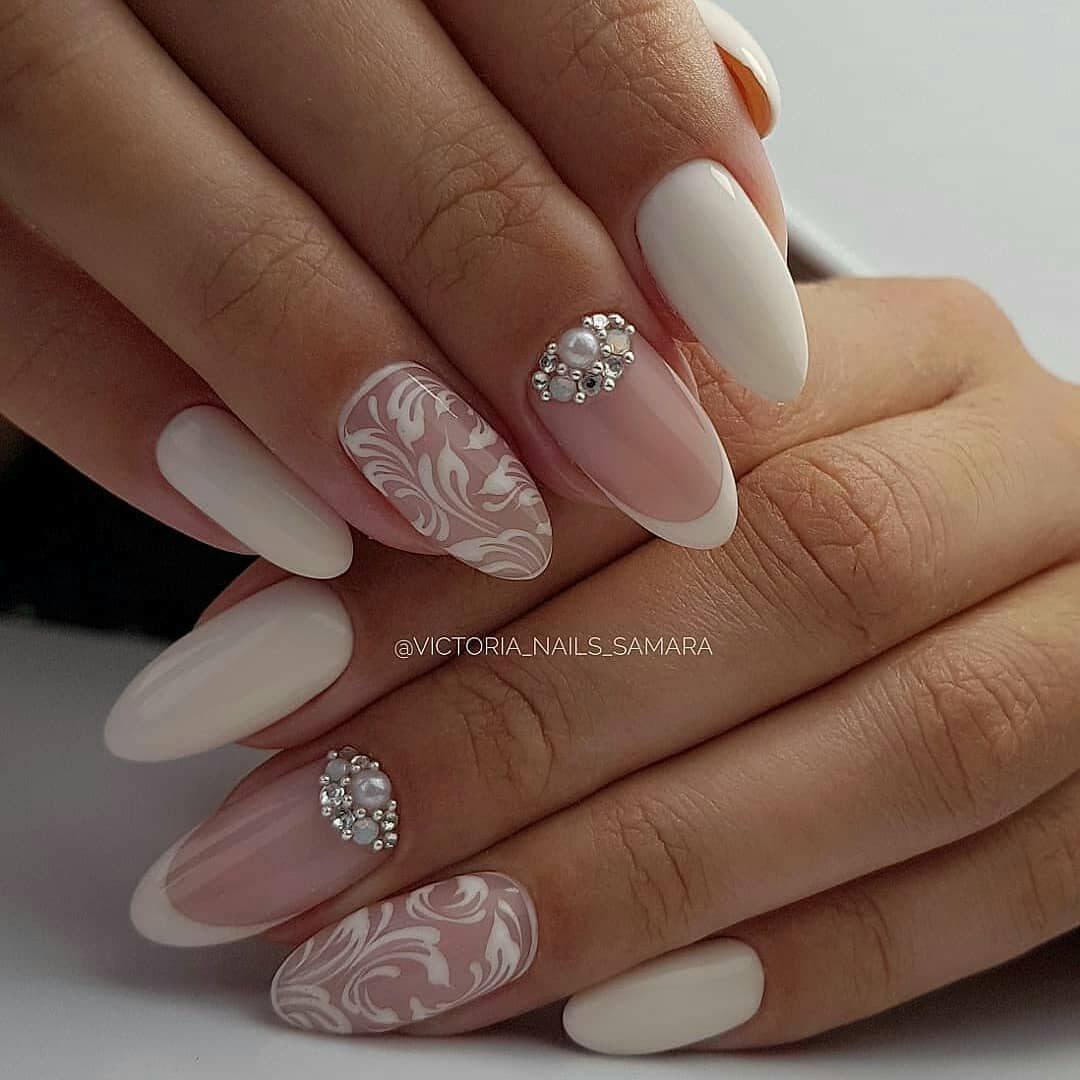 Белый маникюр со стразами