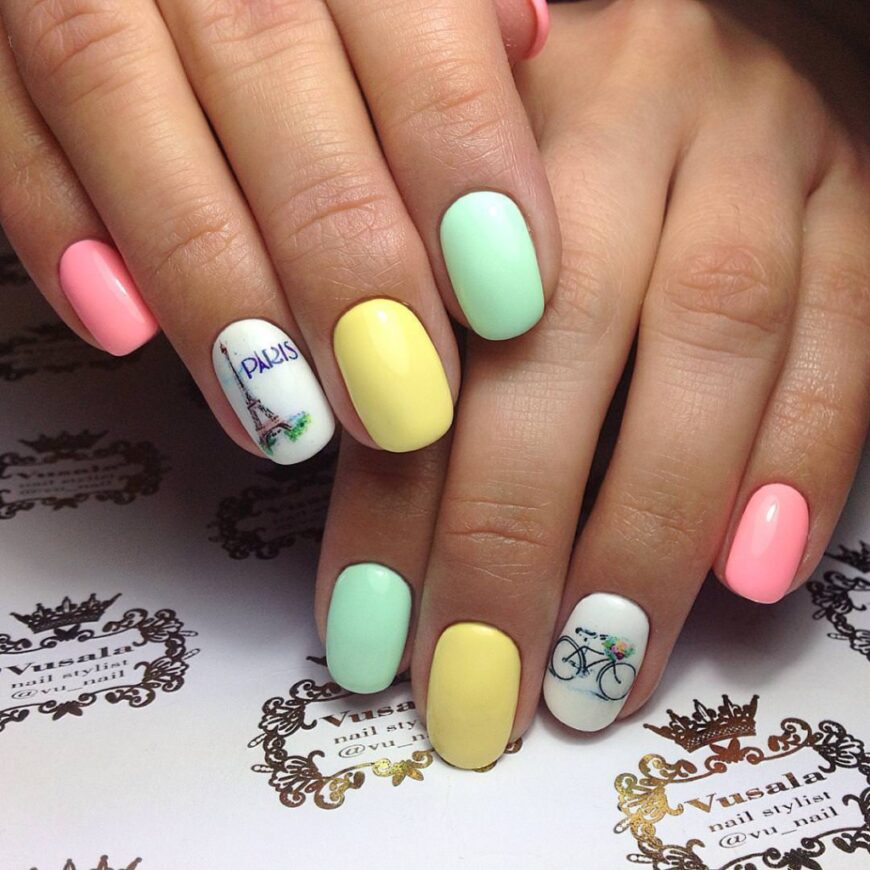 Красивый маникюр с рисунком в пастельных тонах, фото