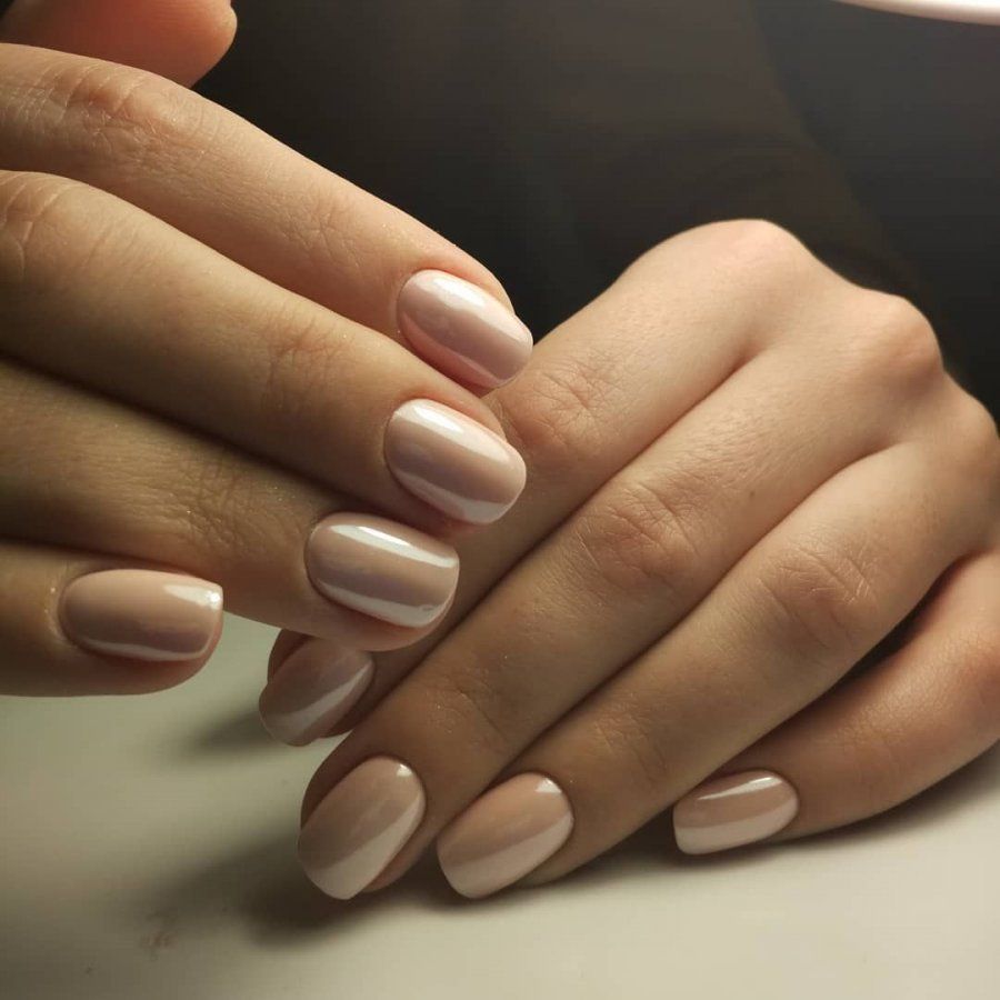 Однако вы также можете обратить свое внимание на белый цвет и на его более стильную альтернативу – молочный. Не менее красиво на коротких ногтях смотрится маникюр, выполненный в технике “голого ногтя”