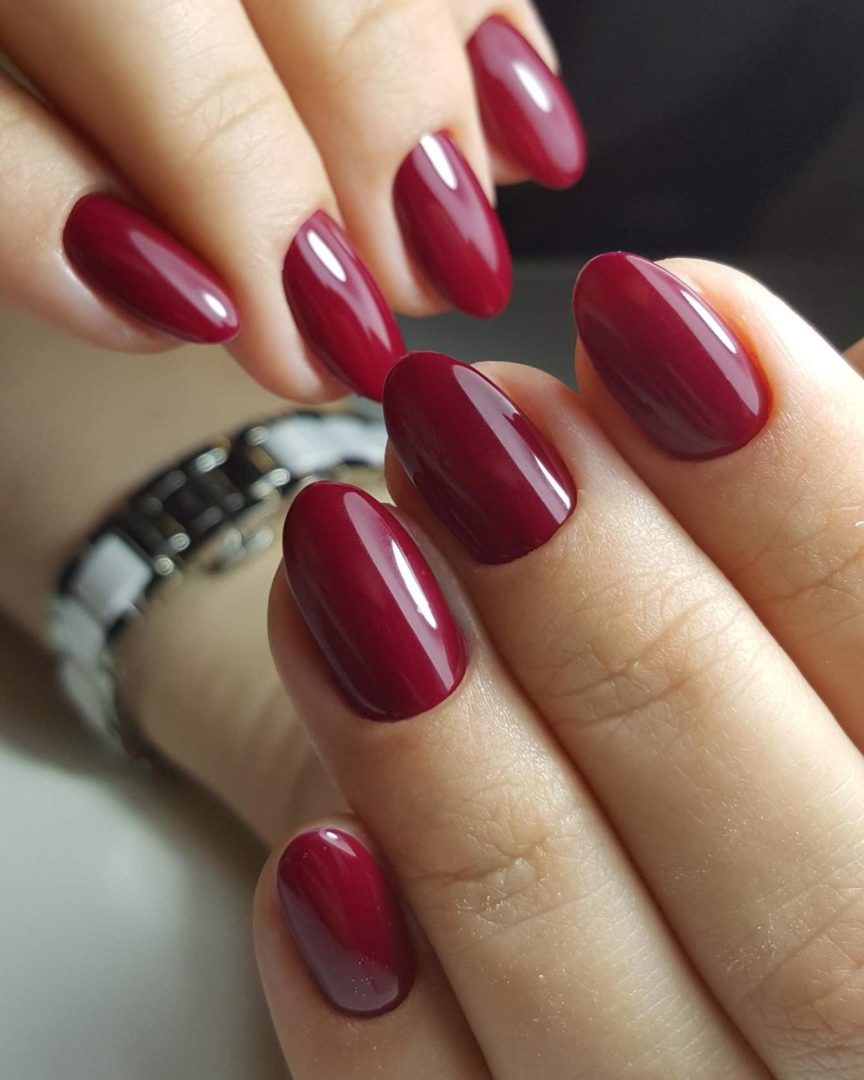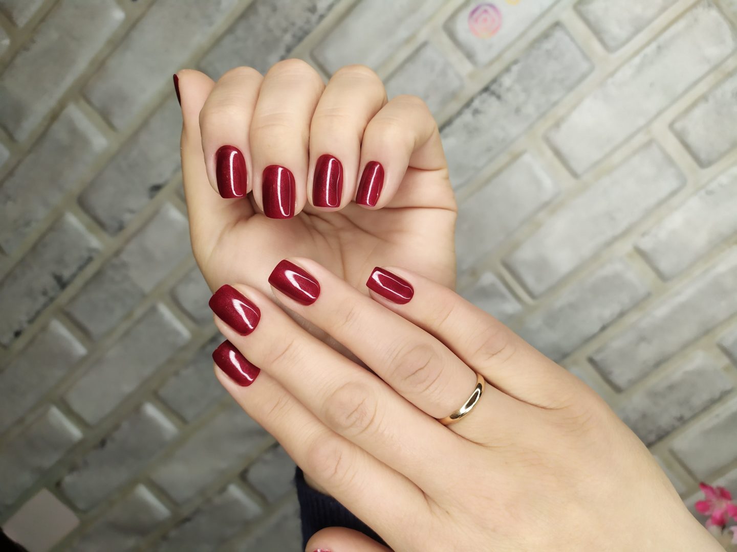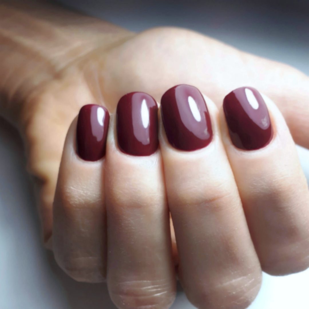 - винный. Классический вариант офисного маникюра — применение матового, винного цвета, зачастую им выделяют несколько ногтей, а остальные оставляют в сдержанных, нюдовых тонах.