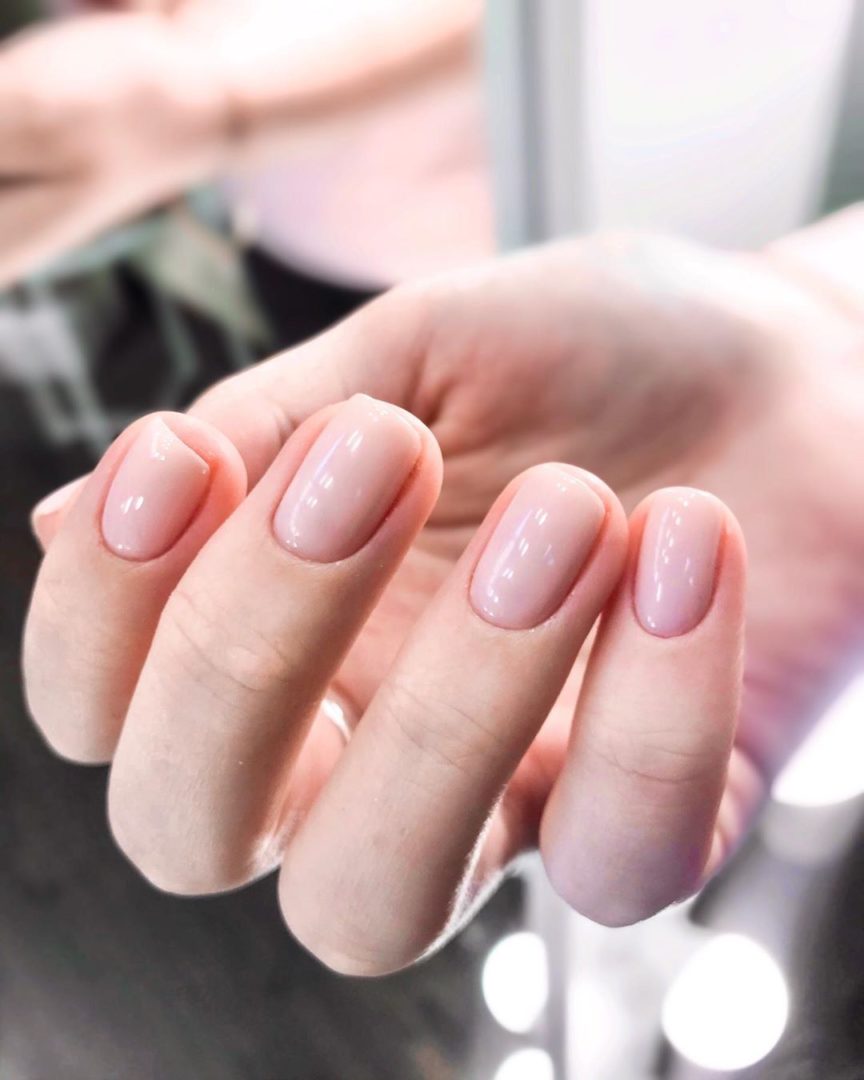 Если у вас короткие ногти – идеальный вариант сделать однотонный маникюр. Нюдовая палитра считается при этом наиболее подходящей