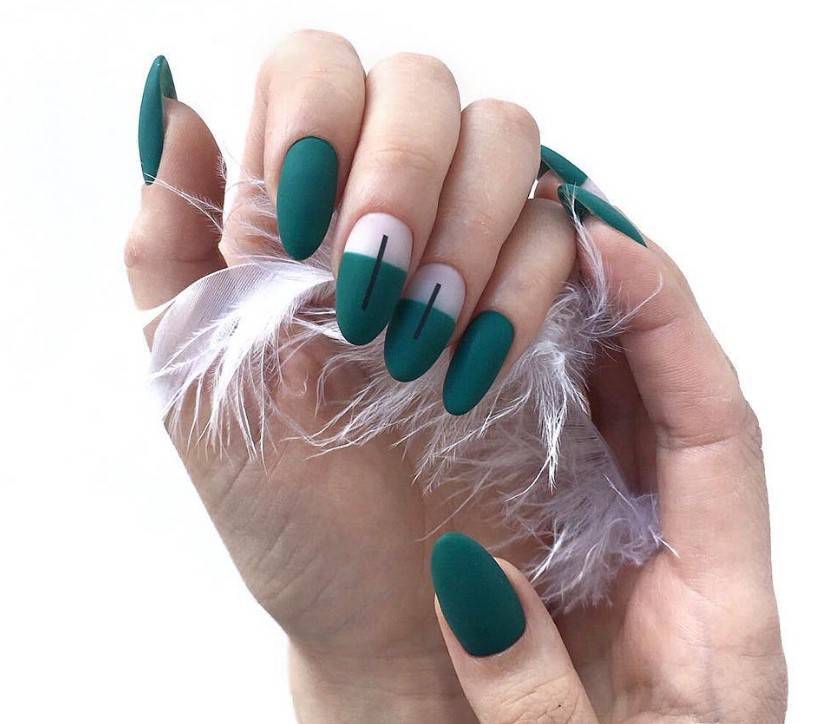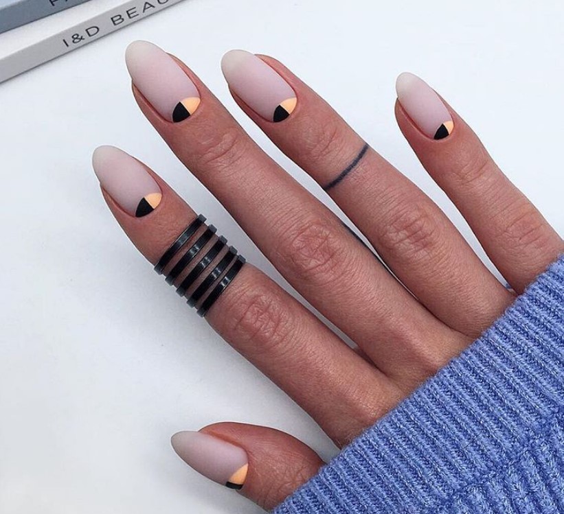 Это дизайнерское решение приемлемо для овальных и миндалевидных ногтей. Если форма квадратная, кончики лучше закруглить.