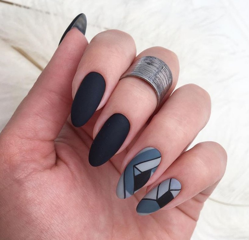 Геометрические мотивы на сегодня являются трендом нейл-дизайна, который также можно применить и в офисном стиле. Разнообразные точки, полоски, треугольники и квадраты дополнят маникюр и сделают его более оригинальным. Безусловно, выделяться нужно, но делать это необходимо с умом. Понимание своего статуса и опыта работы также сыграет важную роль. Если женщина только приступила к своей работе, не нужно использовать слишком яркие тона лака, а уж пестрые рисунки тем более. Получив повышение, можно позволить себе некоторые вольности в дизайне. Однако все, что бы ни хотелось использовать, нужно соотносить с конкретным образом и назначением. К примеру, и синий цвет может стать украшением женских ногтей, но вот только красиво он будет смотреться или нет, покажут выбор техники, расстановка декора на акцентах и такой фактор, как тип работы.
