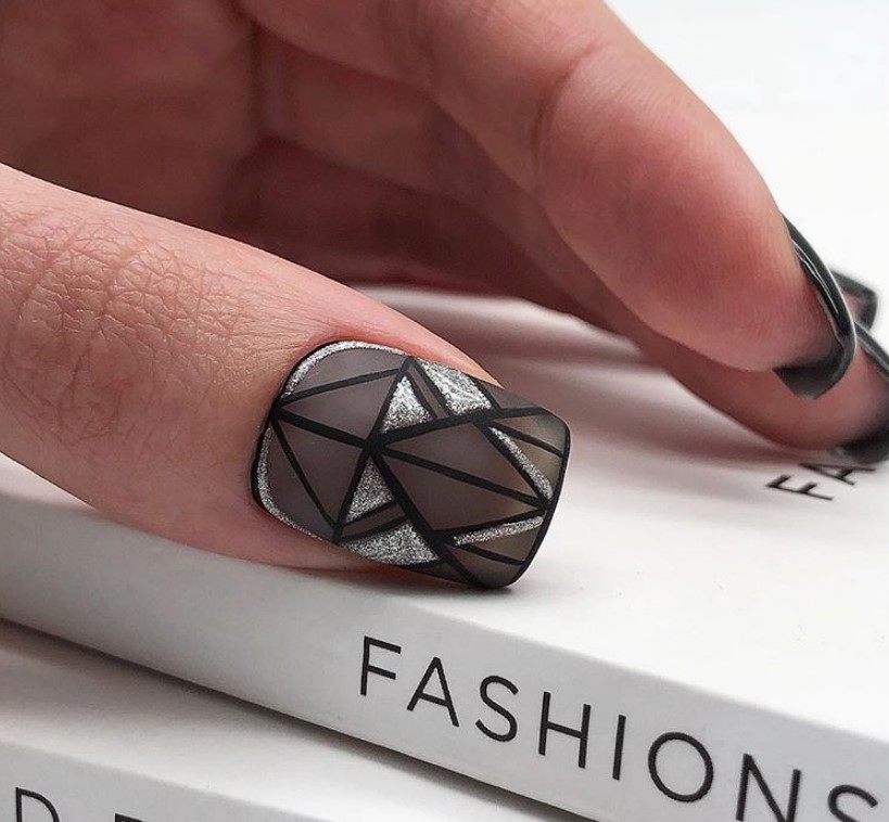 Стильный офисный маникюр 2022 — строгая геометрия фото