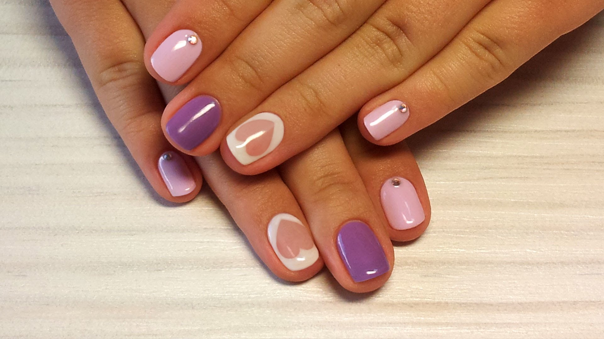 Для начала обсудите с дочкой, какой рисунок она хотела бы видеть на своих ноготках: цветы, сердечки или снежинки – последнее слово за ней. Прозрачные стразы будут хорошо смотреться на любой основе, а для цветных подберите лак, цвет которого будет сочетаться с ними.