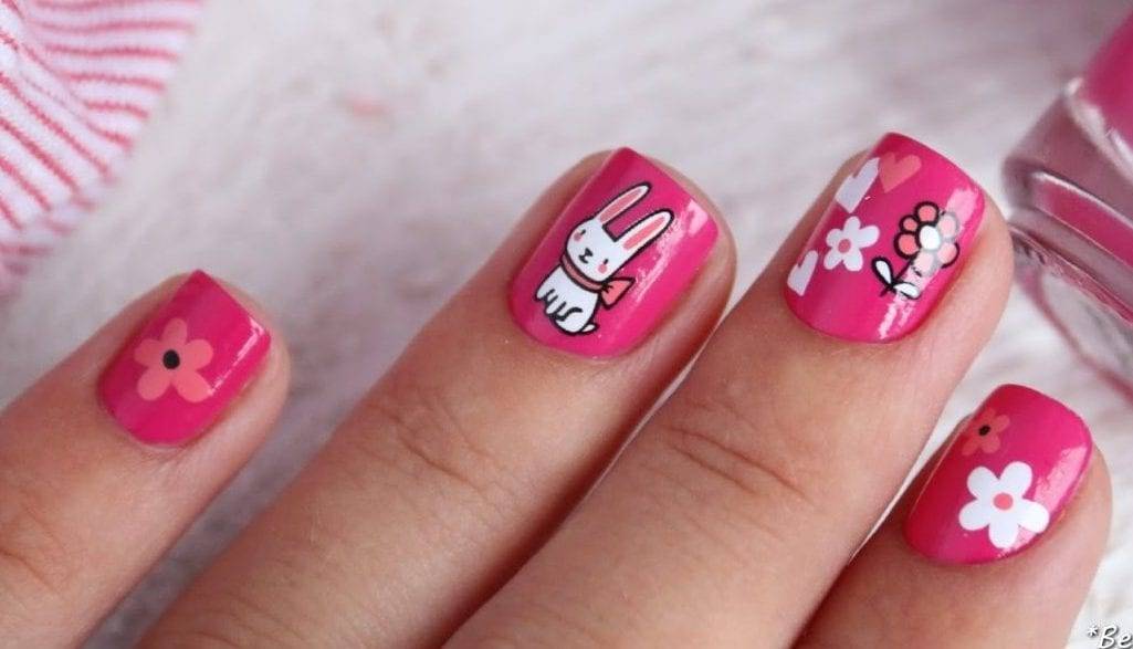 Любительниц мультфильмов можно порадовать изображением главного героя или другим любимым персонажем. Также хорошим решением будут рисунки в виде зверюшек, бабочек или цветочков. Поверьте, она будет в восторге от такого дизайна ноготков.