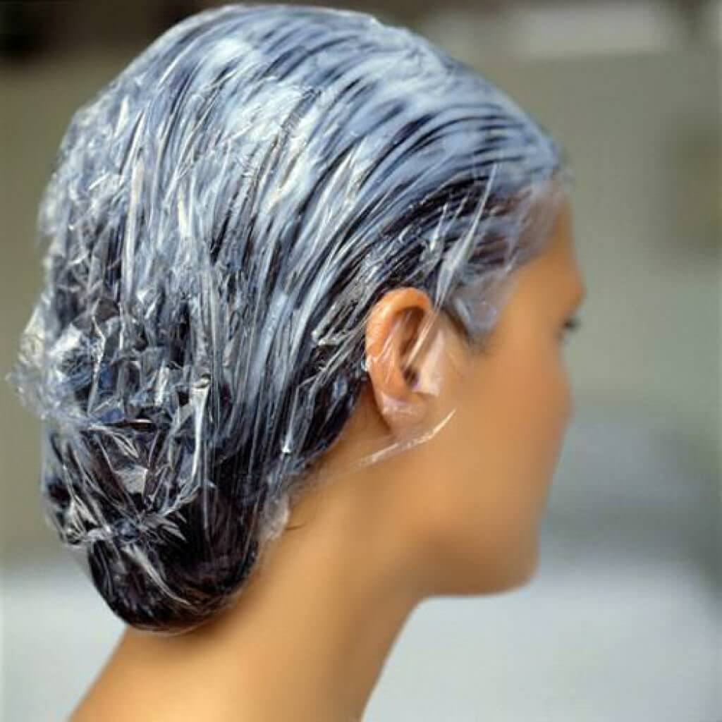 - Для усиления эффекта, на голову надевают полиэтиленовую шапочку либо укутывают махровым полотенцем.