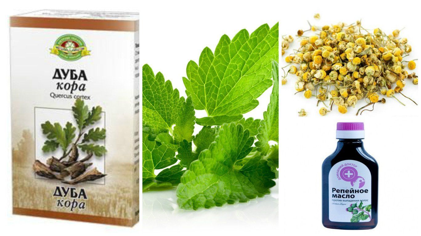 Состав: кора дуба (около двух столовых ложек), цветы ромашки, листья мяты (по 1 столовой ложке), репейное масло (1-2 столовые ложки)