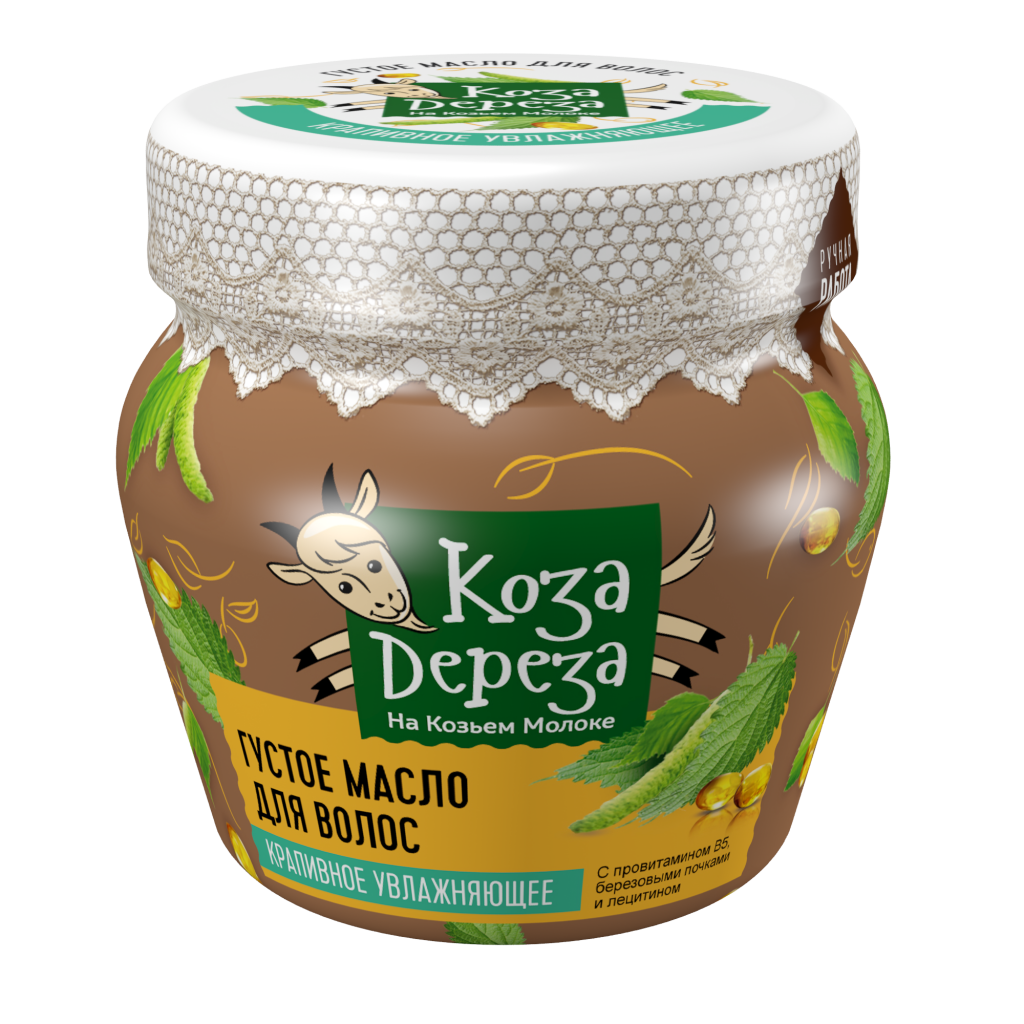 | 9 | Густое крапивное | Настой двудомной крапивы, масло миндаля, оливы, сафлоровое, жожоба, кедрового ореха, экстракт ромашки, сок алоэ веры | Ведерко объемом 155 мл | Увлажняет, питает от корней до кончиков, улучшает расчесывание, делает волосы рассыпчатыми, восстанавливает и защищает их, дает эффект кератинового выпрямления |