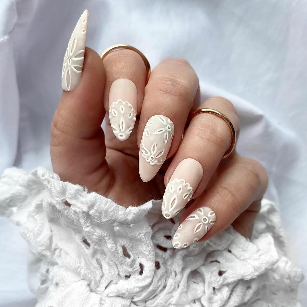 Бежевые стилеты лучше всего подойдут для повседневной носки. Выглядят такие ногти, несмотря на большую длину, натурально и нежно. Бежевые стилеты – это прекрасная основа для френча, нанесения кружевных мотивов, узоров, рисунков и стразов.