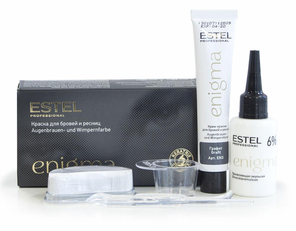 Нанесите пасту скошенной кистью по контуру бровей. Прокрасьте пространство внутри пигментом или краской. Выдержите время, необходимое для воздействия красителя. Удалите пасту при помощи ватного диска и тоника для бровей ESTEL BROWIE.
