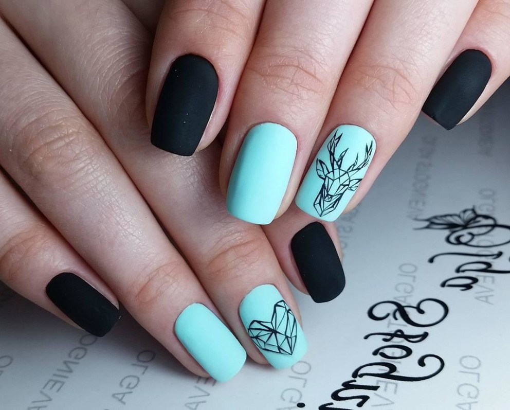 Фото маникюра с сочетанием мятного цвета с другими цветами