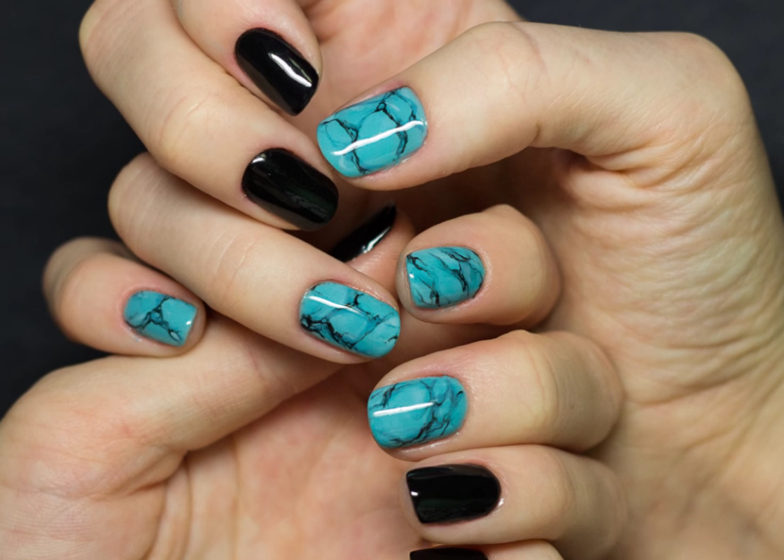 На коротких ногтях мятный отлично смотрится. Будьте осторожны с выбором дизайна, ведь для его размещения не так уж много места, а если расположить дизайн на всю ногтевую пластину это будет выглядеть наляписто в паре с таким самодостаточным цветом. Для коротких ногтей мы советуем использовать только глянцевый топ, он визуально удлиняет ноготки. Можно дополнить маникюр контрастными цветами, но в таком случае лучше не использовать дизайны, и оставить маникюр однотонным.