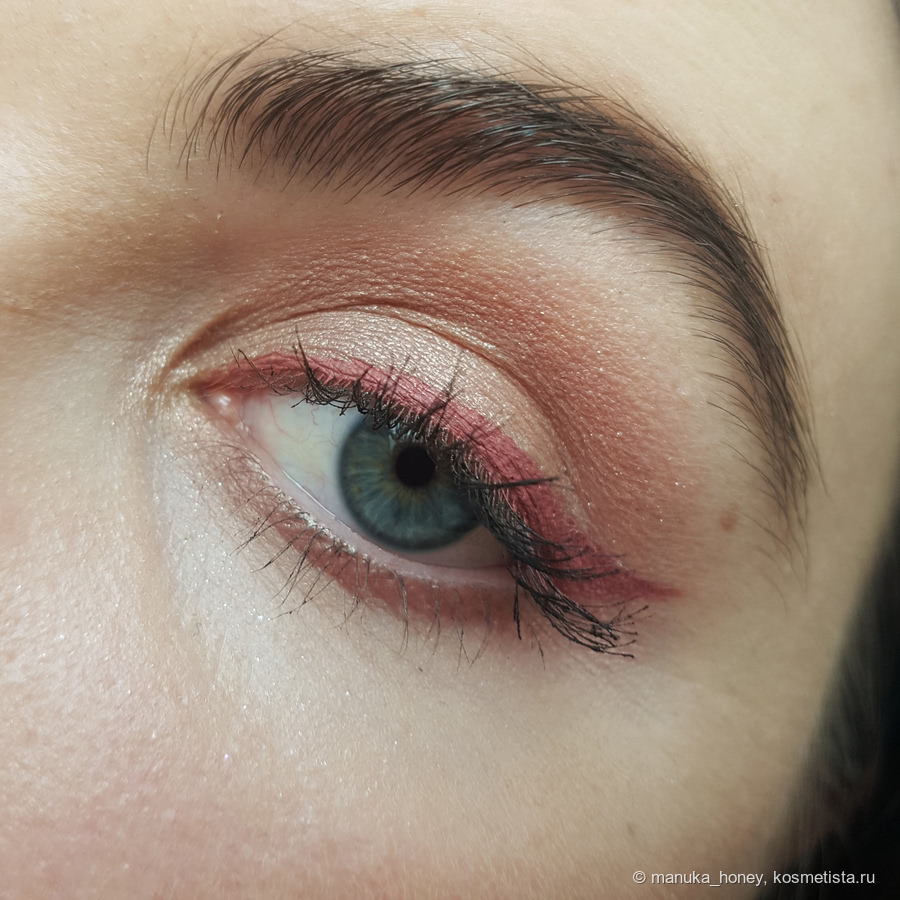 Продемонстрирую помаду и в качестве подводки. Я сейчас активно тестирую палетку Lime Crime Venus XL 2, розовые оттенки из которой отлично сочетаются с цветом помады.