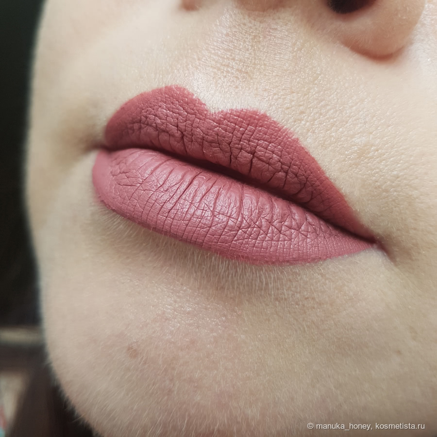 Текстура у данной помады — кремовая, одна из самых жидких среди матовых помад подобного типа, при этом – не водянистая. На губах застывает около минуты.