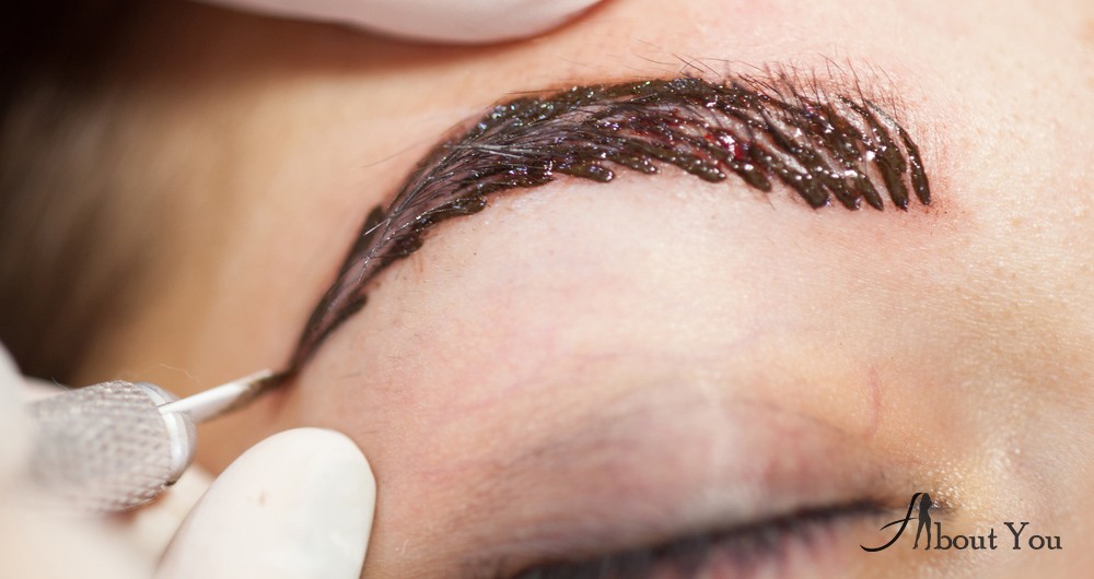 Сначала мастер прорисовывает границы будущей брови, лишние волоски удаляет пинцетом. Тщательно обработает область антисептическим раствором и наносит местный анестетик. Спустя несколько минут обмакивает кончик инструмента в пигменте и вводит лезвие в кожу на глубину до 0.4 мм. На эпидермисе образуются микронасечки с краской. Лишний пигмент удаляет салфеткой или ватным диском. Поверхность обрабатывает дезинфицирующим раствором и смазывает ранозаживляющим кремом.