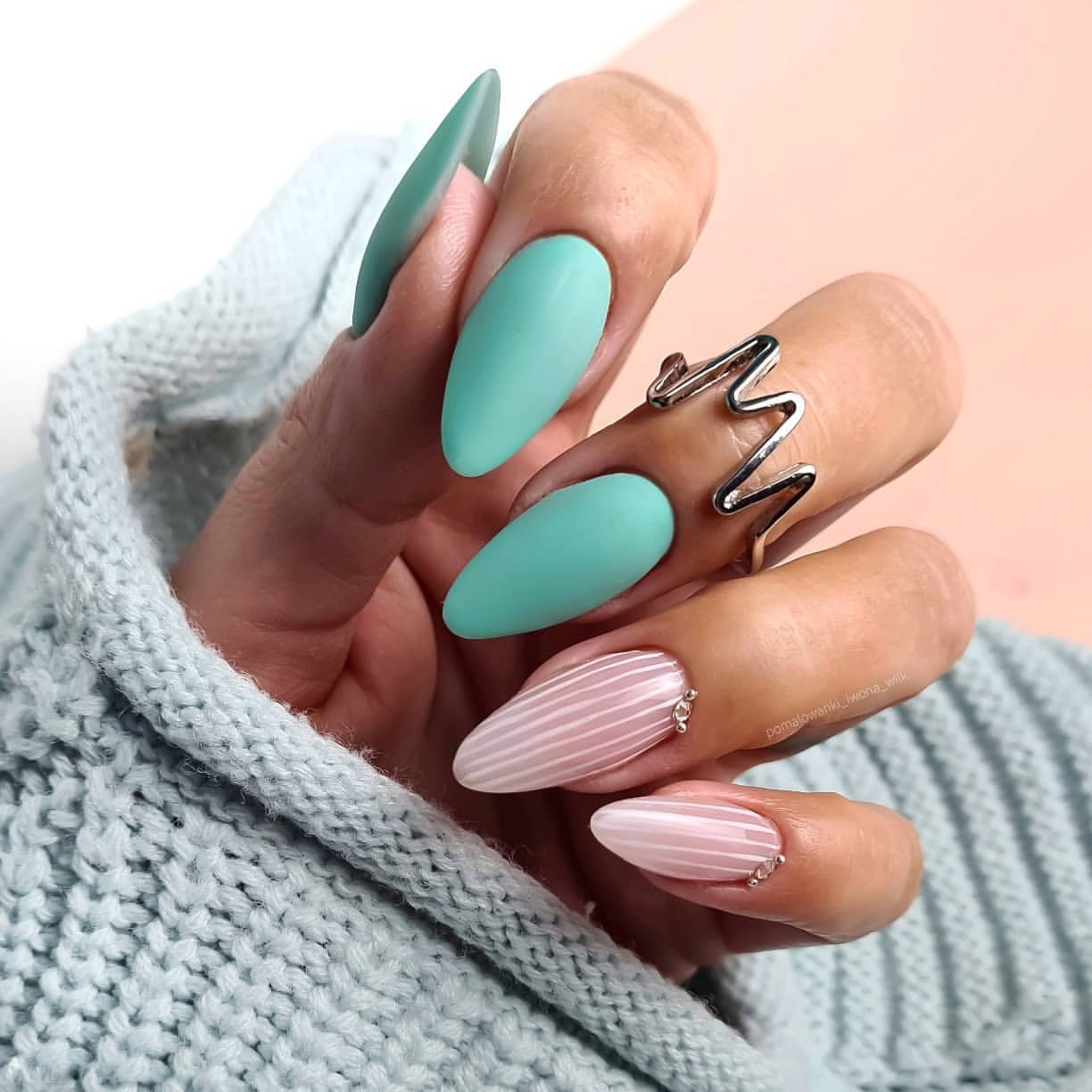- комбинация матового и глянцевого пастельного оттенка лака в одном маникюре — идеальное решение для неординарных личностей;artenasunhass_