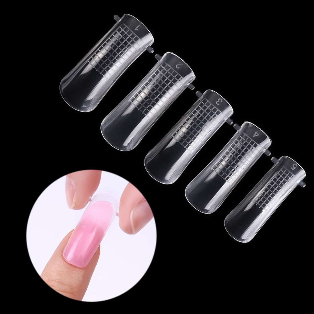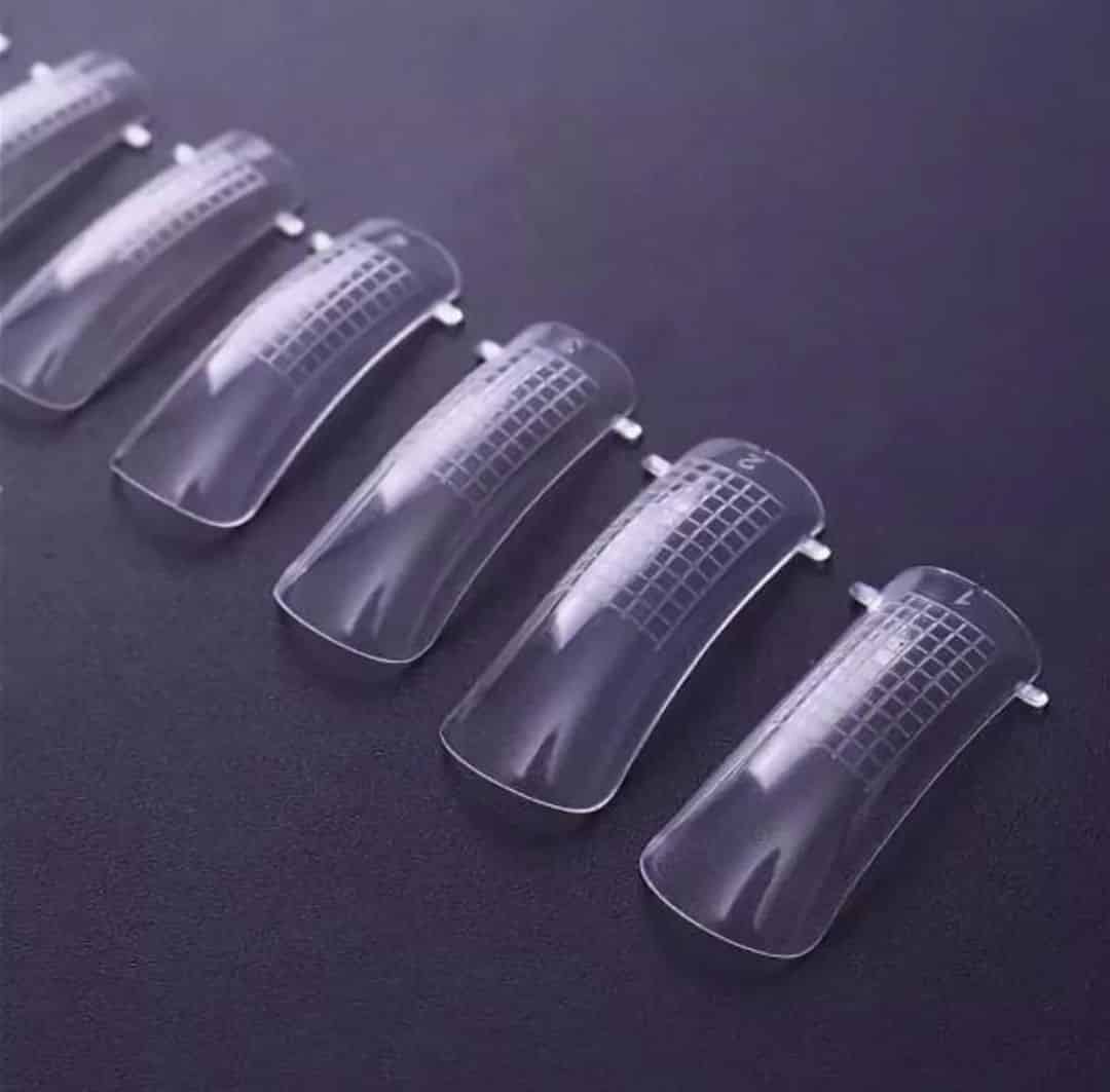 Это специальные многоразовые формы разных размеров. Внутрь изделия выкладывается материал, прижимается к ногтю, под кутикулу, высушивается в лампе. Держась за кончики пластин типса снимается, ногтям пилочкой придают правильную форму.