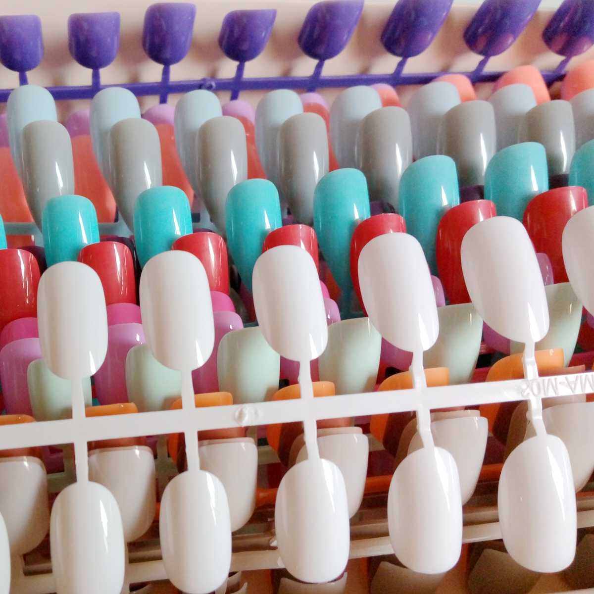 подбор типс по цвету зависит от последующего дизайна и формы натурального ногтя. Для проблемных ногтей предпочтительнее прозрачные типсы (лучше видно линию состыковки), они же хороши для дальнейшего цветного окрашивания. Типсы молочного оттенка идеальны для натурального френча, так как идентичны цвету натурального ногтя;