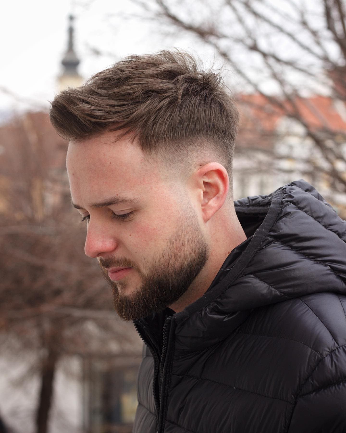 Список модных мужских молодежных стрижек 2022 года невозможно представить без элегантной британки. Правда, в наступившем сезоне она стала выглядеть более эффектно за счет резкого фейда и укороченных висков, которые иногда смотрятся выбритыми, особенно на блондинах. Пряди на затылке обычно оформляются в аккуратный каскад, а челка, достигающая 8 см, позволяет экспериментировать с укладкой на любой вкус.