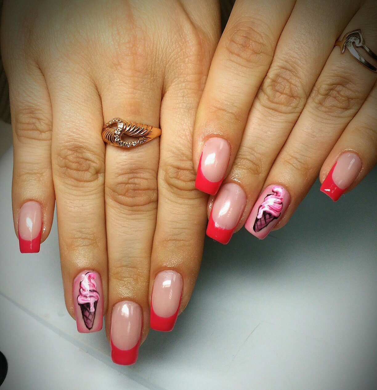 Такой дизайн будет уместен там, где к рукам хочется привлечь особое внимание. Например, его может сделать пианистка перед концертом, который будет проходить в неформальной обстановке