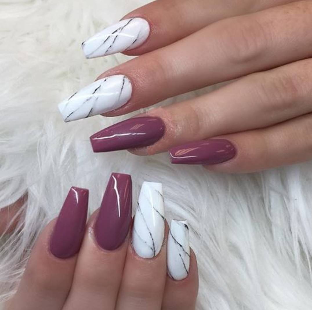 Длинные ногти как нельзя лучше передадут красоту и различные вариации маникюра с мараморным дизайном. В тренде опять овальные и мендалевидные формы, на которые великолепно можно исполнить яркий маникюр с эффектом мрамора. Сочетание цветов может быть самое разное: