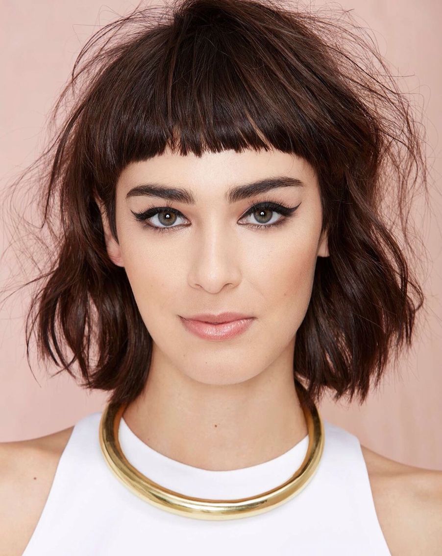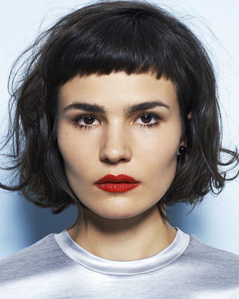 Микрочелка подходит для красавиц с овальным лицом и умеренно высоким лбом. Это одна из классических французских моделей, которая этой зимой вышла на новый уровень. Короткая челка обязательно выделит вас из толпы.