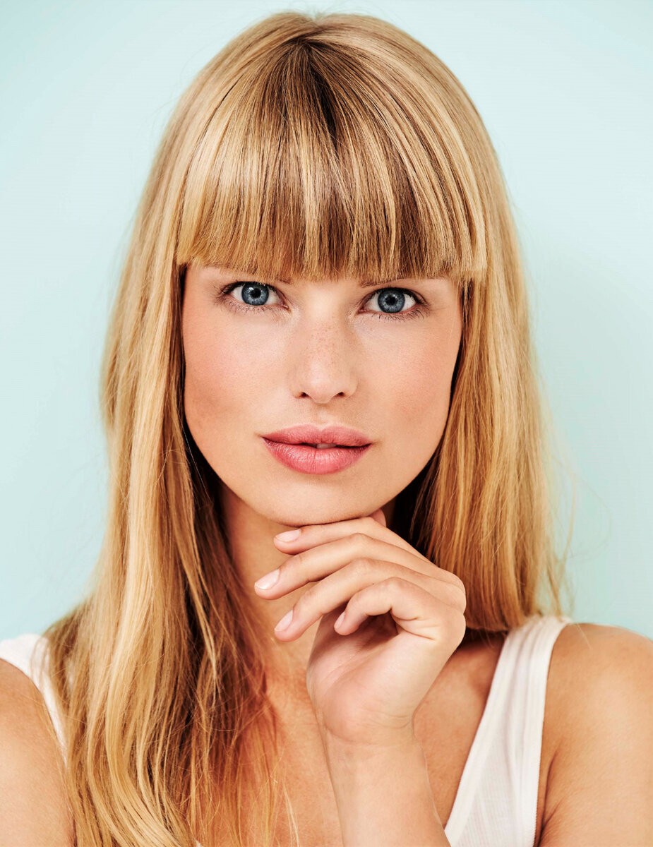В данном случае хорошо подстриженная челка делает вас моложе, очаровательнее и утонченнее. Она подходит круглому лицу, поскольку ее легкость не укорачивает его. Это отличный вариант, если вы не хотите тратить много времени на ежедневную укладку волос.