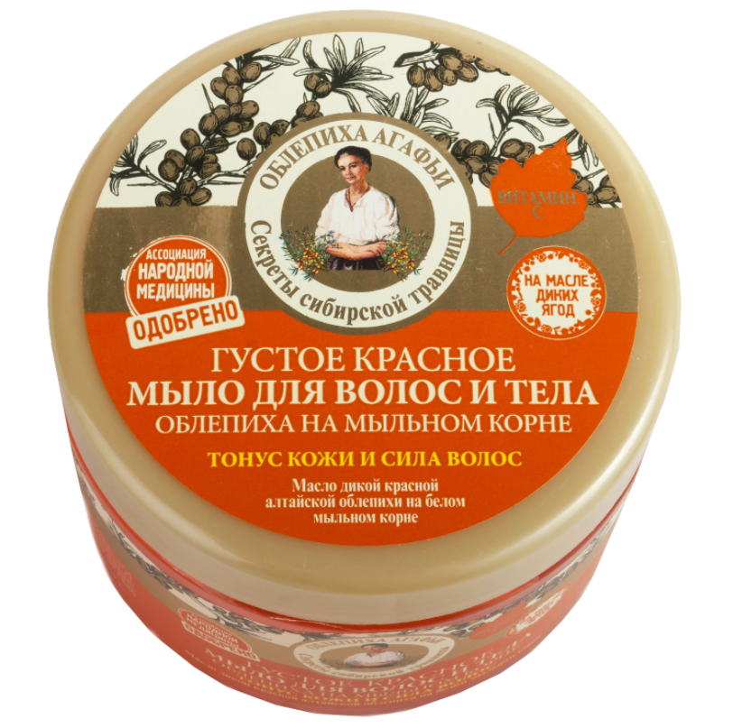 Густое мыло с мягкой консистенцией для качественной очистки волос. Оно изготовлено из экологически чистых компонентов, среди которых мыльный корень, шиповниковое масло, таежный самоцвет и даже сок из ягод дикорастущей облепихи с Алтая. Продукт весьма ароматный, нежно ухаживает за кожей и волосами. При умывании лица дерма становится здоровой, а также наблюдается лифтинг эффект. Дарит волосам энергию, силу и сияние, при этом глубоко очищая их от загрязнения.