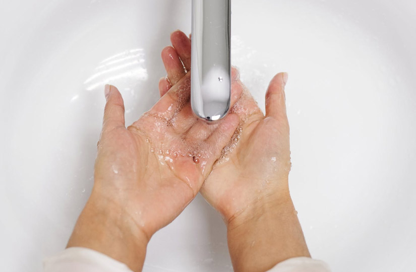 - Кожу смачивают водой и наносят на нее мыльную пену. Распределяют ее рукой по лицу аккуратными массажными движениями.