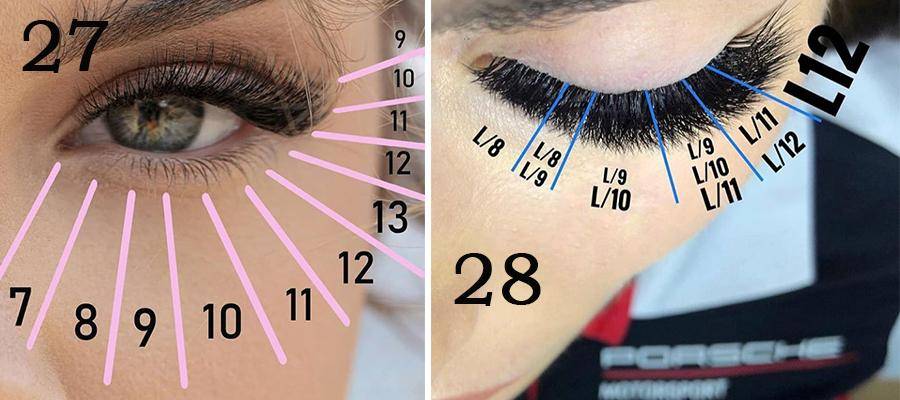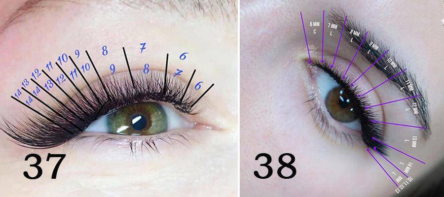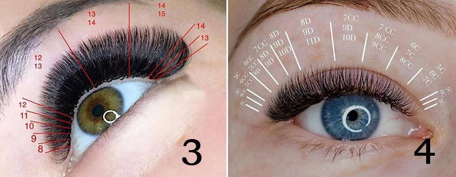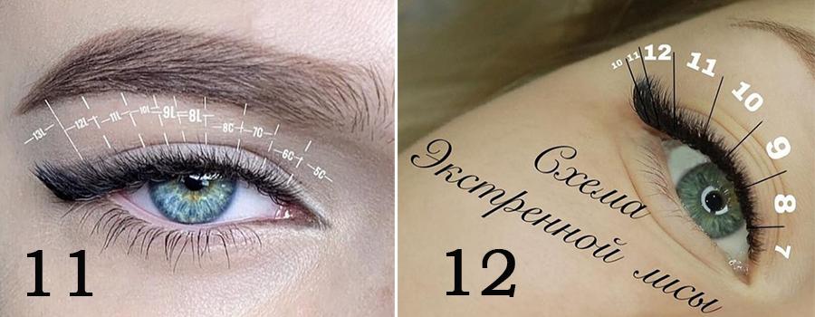 13. Схема натурального эффекта наращивания ресниц с двойной рядностью.