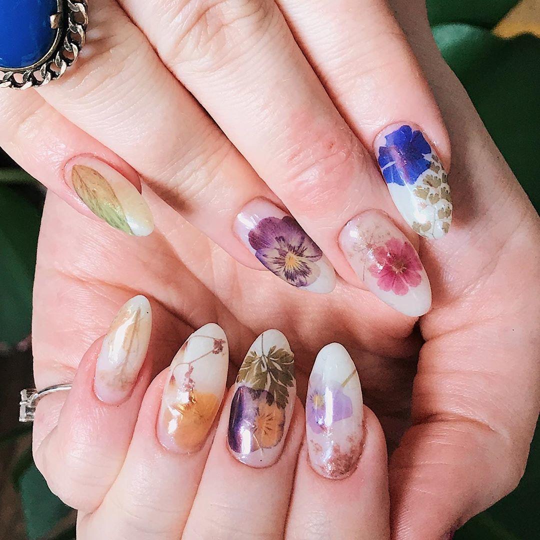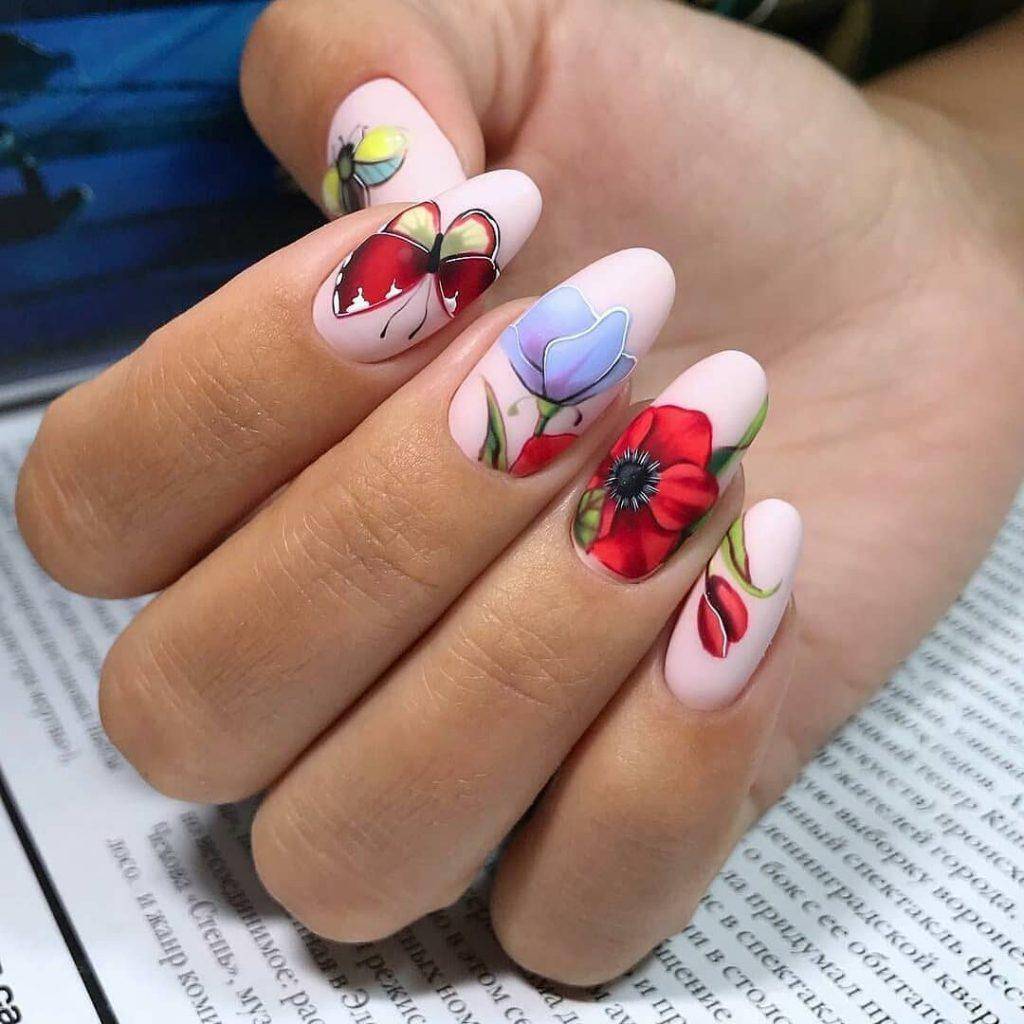 Разнообразие полевых цветов огромно, поэтому у вас будет из чего выбрать при создании этого дизайна. Для создания маникюра также лучше использовать слайдеры. Они могут быть на прозрачной или белой основе. Часто слайдеры дополнены другими элементами, например, бабочками, сердечками. Дизайн с полевыми цветами станет отличным решением для весеннего и летнего образа. Маникюр с мелкими и воздушными цветами позволит отдохнуть от сложных насыщенных нейл-артов.
